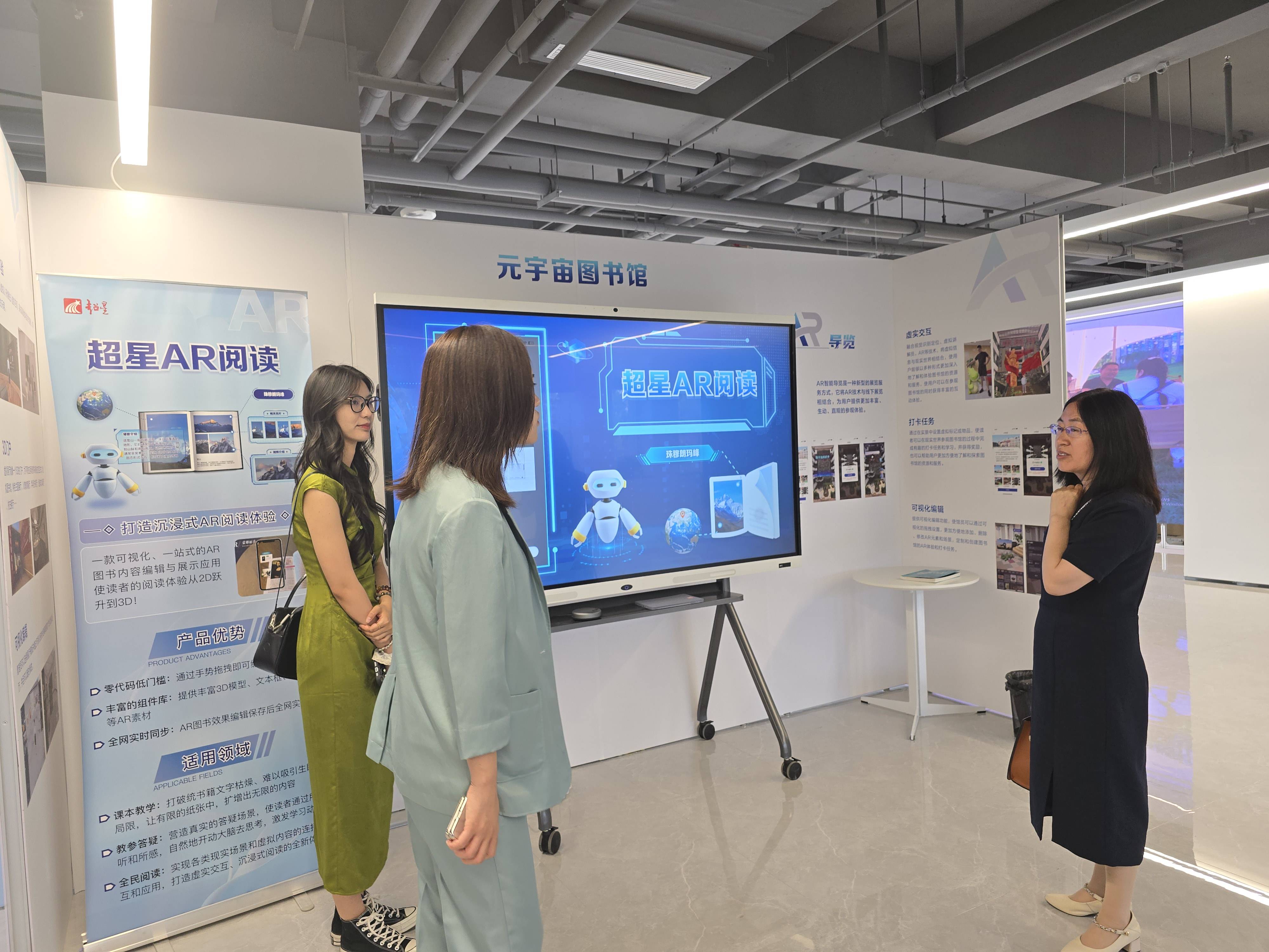 6月18日上午,李娟一行参观了超星尔雅科技园,实地体验AI馆员、元宇宙图书馆、智慧教室等未来学习中心的最新建设成果,并与超星产品研发团队开展调研座谈。座谈会上,李娟一行认真听取了超星团队以《人工智能背景下的未来学习中心建设》为主题的系列报告,详细了解了未来学习中心建设的理念内涵与目标规划。李娟指出,日新月异的数字技术提供了新机遇和新挑战,未来学习中心的建设符合高校教育理念更新与学习模式转型趋势,希望双方加强对接沟通,融合新型技术,整合数据资源,共同探索未来学习中心建设的创新路径,推动先进教育理念落地落实,培养具备终身学习能力的未来人才,实现合作共赢。随后,双方围绕未来学习中心的建设构想展开了具体深入的交流。