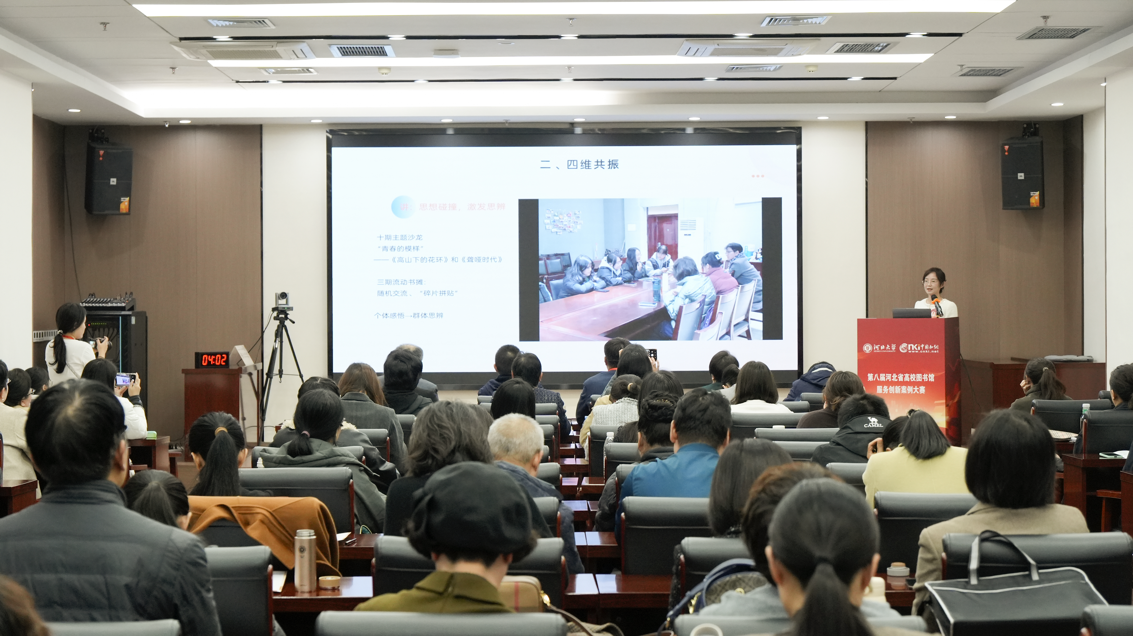 图书馆王敏团队提交的“四维共振、双螺旋赋能—石家庄学院图书馆经典阅读立体化推广实践”案例聚焦经典阅读推广,创新构建四维联动模式,采用双链模式有效激活文化育人效能,从全省百余项案例中脱颖而出,荣获二等奖。这是图书馆连续两年在此类赛事中获奖。图书馆馆长任靖宇在分论坛作题为“AI重塑生态、人机协同未来”的专题报告,分享了图书馆在构建全域服务新生态的实践探索,系统性阐释了“云+机+人三位一体”服务体系的落地路径,驱动图书馆从“资源仓库”升级为“全域服务生态中枢”的经验做法。
