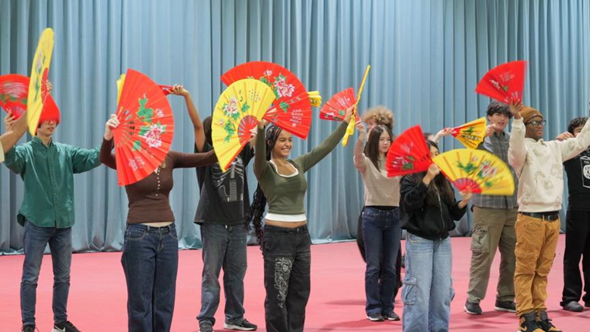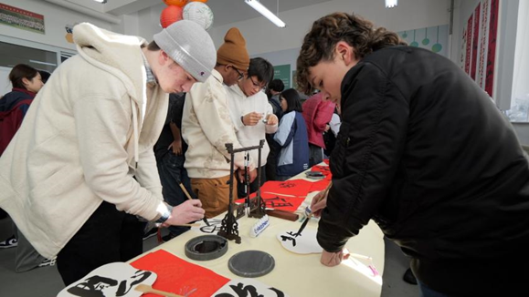 本次研学交流突破了传统参访模式,构建起沉浸式的“行走课堂”。在张丽美术高中,美国学生初次执笔,在提按转折间体验中国书法的笔墨意趣;在体育学院,乒乓球台的银球往来,延续着小球转动大球”的外交智慧;太极扇体验环节,则让刚柔并济的东方哲学在扇舞生风中深入人心。
