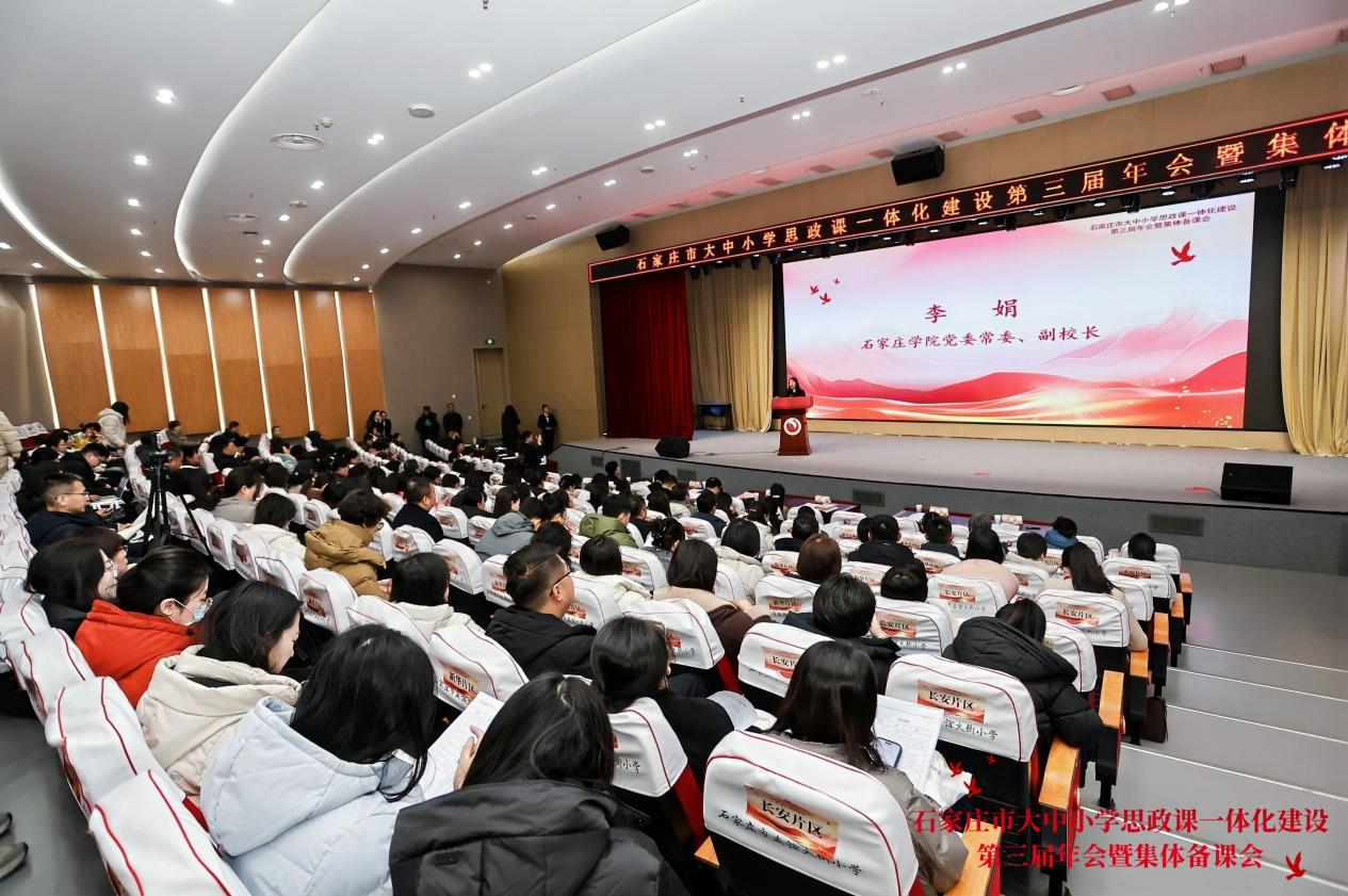 12月11日,由石家庄市教育局主办,我校和桥西区教育局承办的石家庄市大中小学思政课一体化建设第三届年会暨集体备课会在石家庄市友谊大街小学南校成功举办。石家庄市教育局党组成员、副局长苏燕,石家庄市桥西区教育局党组书记、局长张振亚,我校副校长李娟出席大会并致辞。