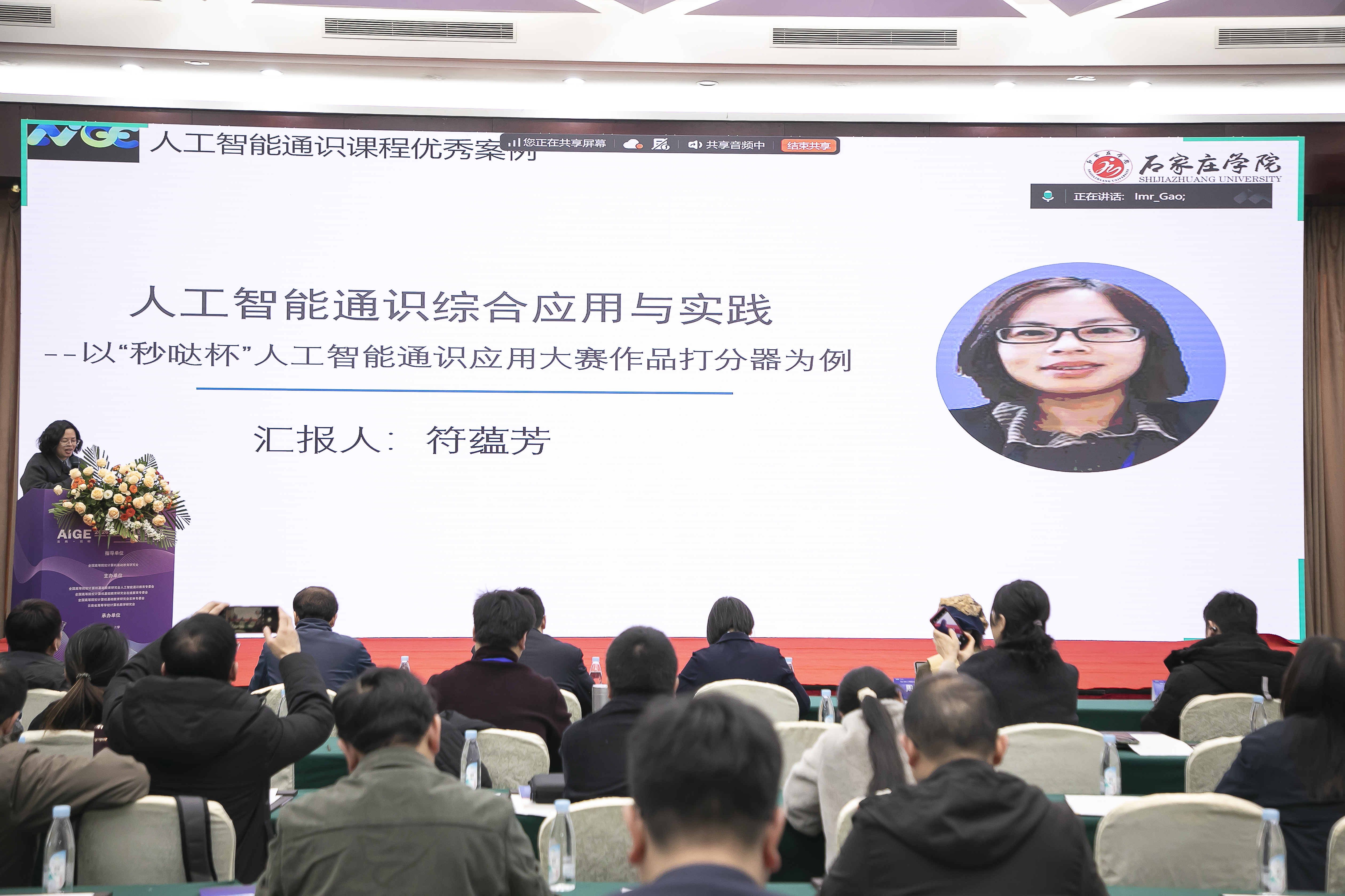 在大会案例分享环节,符蕴芳教授详细阐述了该案例的设计理念、实施路径、应用场景以及学生团队在相关赛事中取得的优异成绩,并就人工智能与通识教育深度融合的可行路径与参会教师展开深入交流,获得广泛好评。