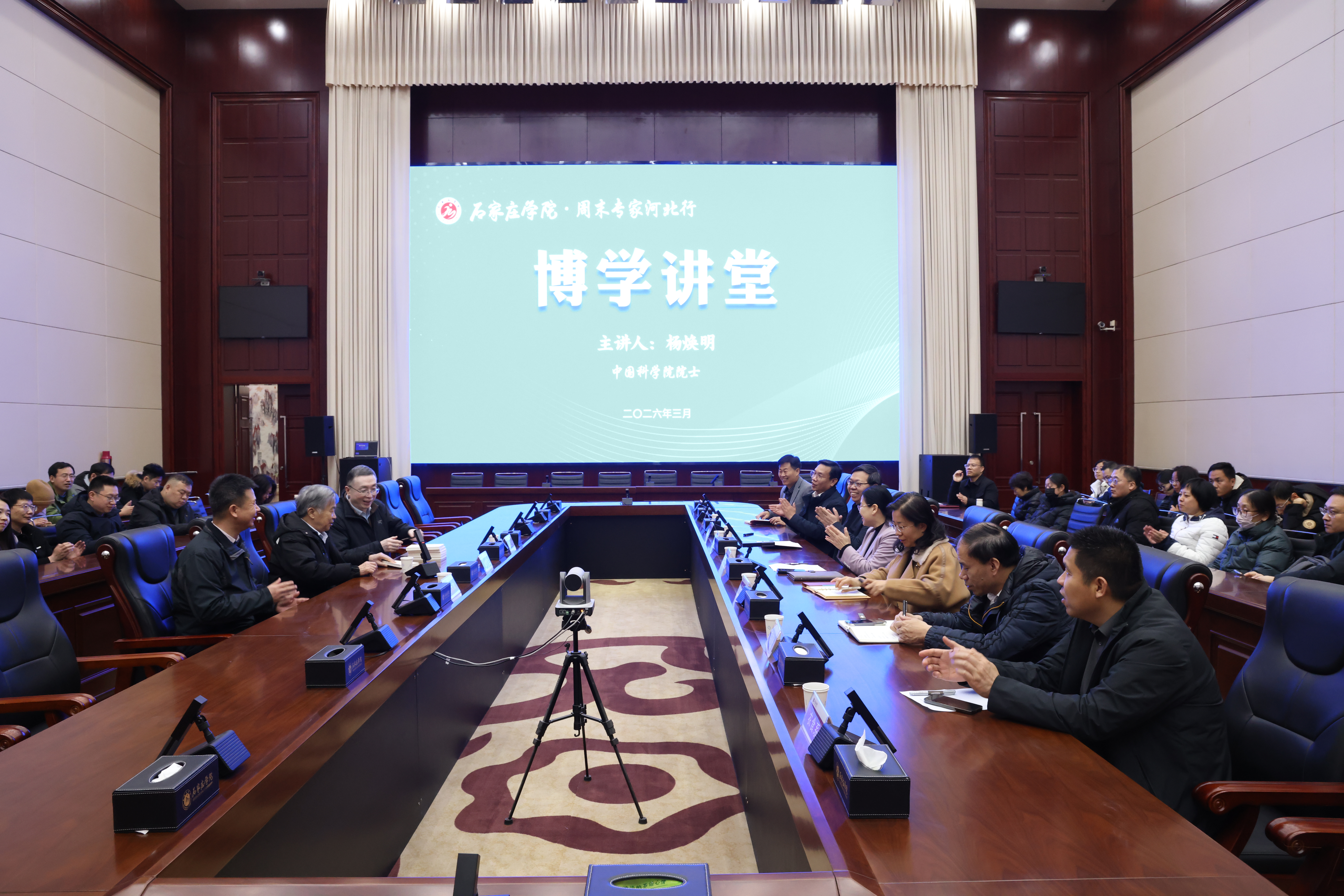 3月5日下午,我校举办博学讲堂暨“周末专家河北行”专题活动,特邀中国科学院院士、华大基因理事长杨焕明教授作题为《生命是什么》的主题报告。中国生物工程学会秘书长张宏翔研究员、中国科协生命科学学会联合体副秘书长郭天欢教授参加报告会。校长王永芹,副校长冯宝强出席报告会。科研处、化工学院/生物医药学院、理学院、农业与食品科学系教师代表等200余人聆听了报告。