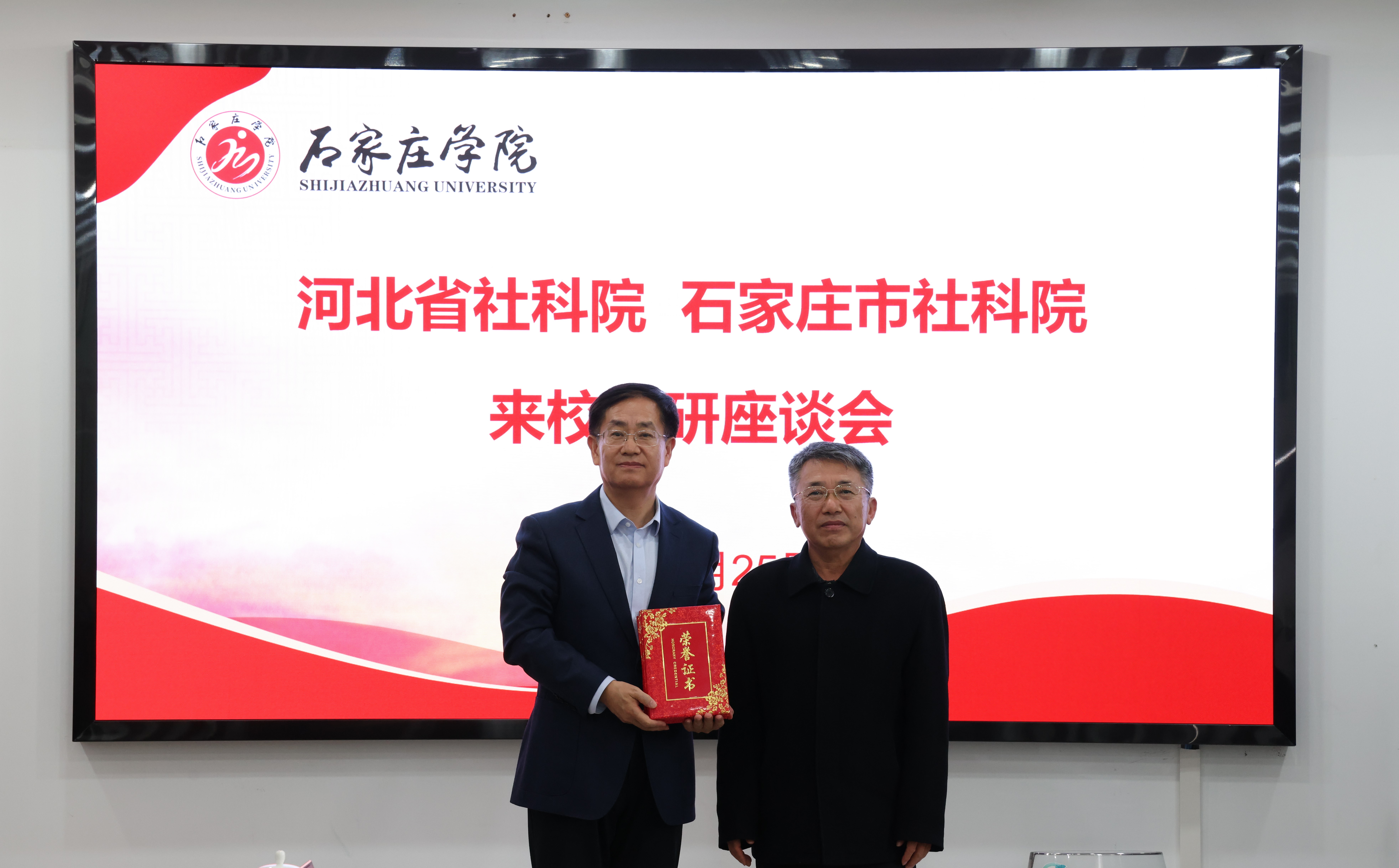 袁宝东简要介绍了河北省社会科学院及中共河北省委讲师团的相关工作,并为我校入选河北省社科院“新思想引领新征程”主题宣讲成果颁发荣誉证书。他表示,我校理论宣讲工作理念新颖、成效突出、数智化建设成果显著、实践育人落地见效,真正实现了理论宣讲与社会实践深度融合,推动了党的创新理论切实融入校园、浸润师生、走向社会。期待与我校建立更加紧密的联系,共同为理论宣讲工作提质增效。