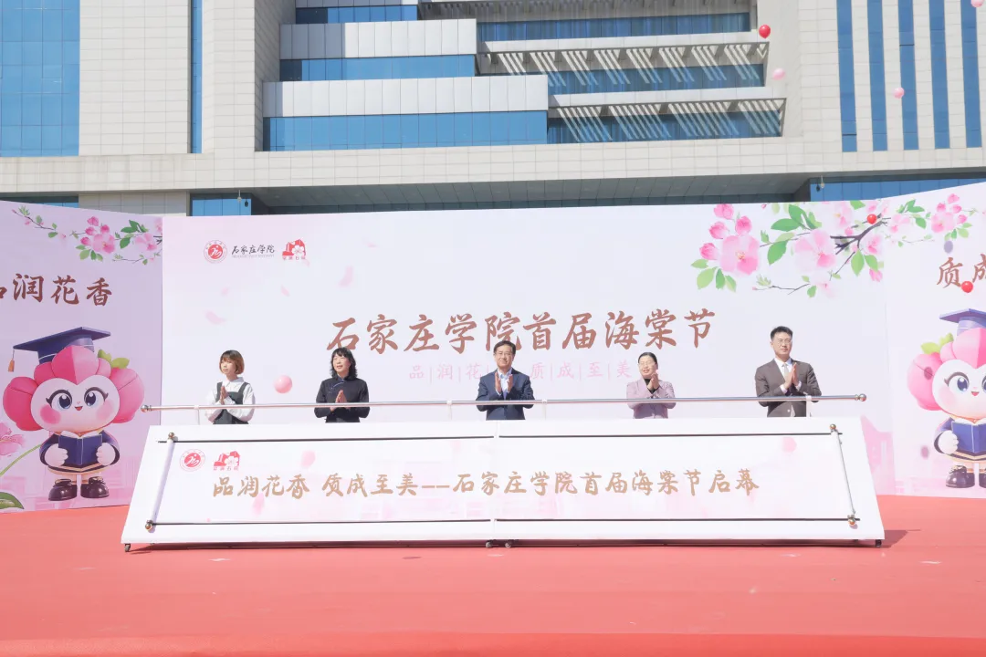 上午10时,开幕式在音乐喷泉广场举行。党委副书记祭立怀在致辞中表示,海棠之美,在于扎根沃土、向阳生长的坚韧;石院之志,在于立德树人、服务社会的担当。他指出,首届海棠节是学校深入实施“1396”发展战略、推进“文化石院”建设的重要举措,旨在通过这一品牌活动,传递石院精神,汇聚发展力量,让更多人感受石院的独特魅力。随后,党委书记陈亮、校长王永芹、海棠节主题曲词作者郭素珍、校友代表赵华、海棠节吉祥物设计者、新闻与传媒学院学生赵依涵共同推杆,宣布首届海棠节开幕。