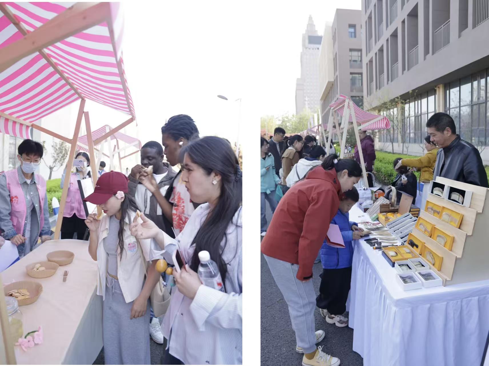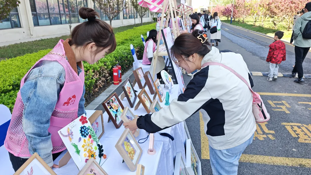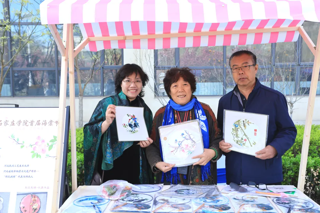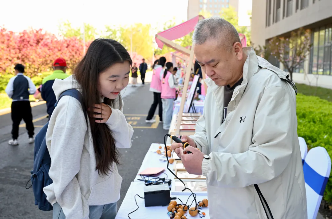 园区内,各类活动多点开花,让游客在沉浸式体验中感受“文化石院”的深厚底蕴。非遗市集上,邢氏刺绣、行唐剪纸、掐丝珐琅等传统技艺悉数亮相,糖画、陶艺彩绘等互动体验项目吸引了大批市民驻足参与,孩子们在非遗传承人的指导下,亲手制作属于自己的海棠主题手作,在实践中触摸传统匠心。书画摄影展上,丹青笔墨间的海棠风骨、镜头下的校园春景,展现了师生对美与文化的追求;AI互动体验区,虚拟文化导游项目,将科技与文化巧妙结合,让游客在趣味互动中感受数智石院的魅力。