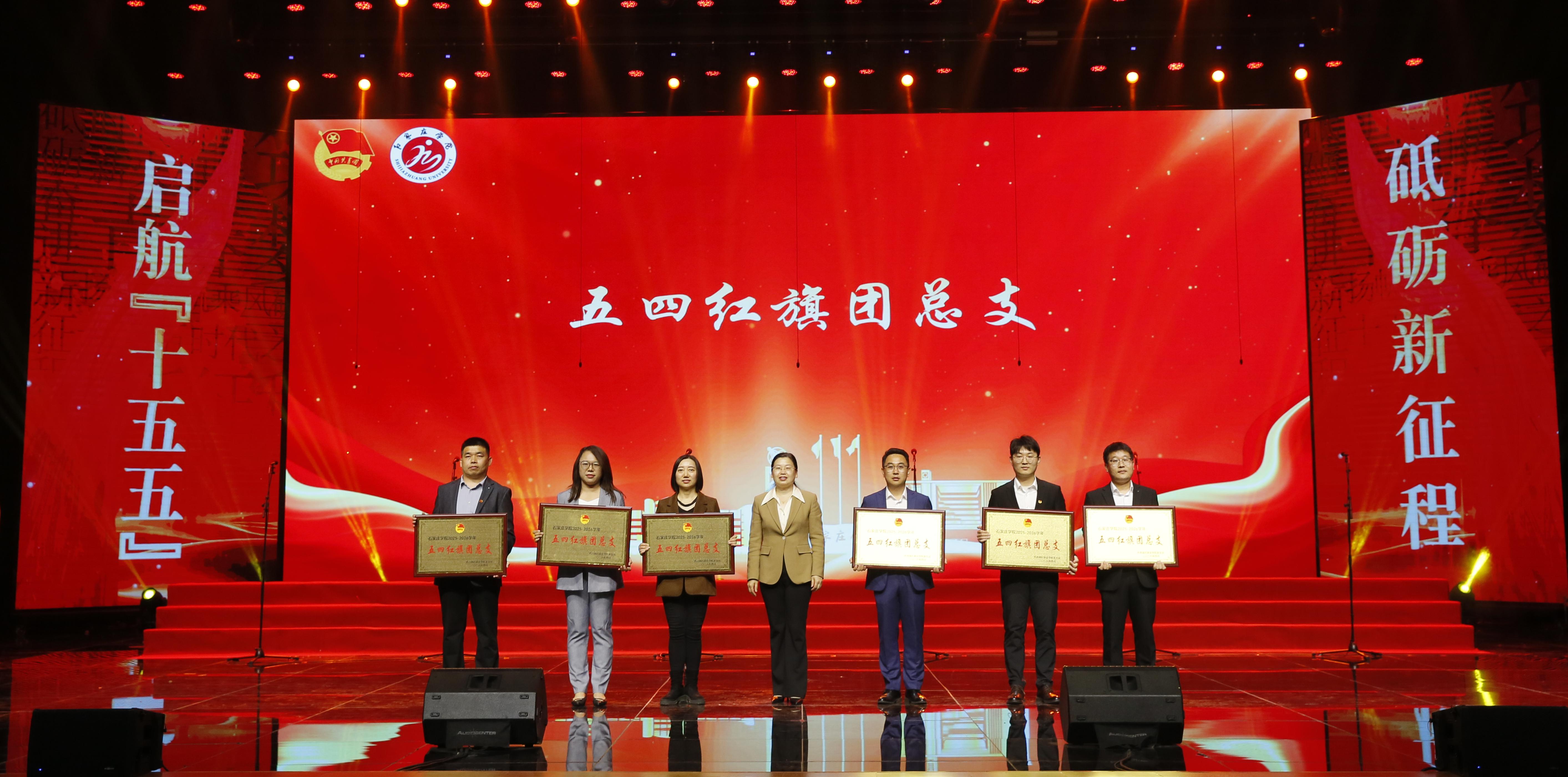 合唱比赛前对易班优秀学生工作站、优秀团员、向上向善好青年、红旗团支部、学生青年五四奖章、学术科技节获奖单位、劳动教育先进单位、征兵工作先进单位、青年志愿服务优秀组织、辅导员素质能力大赛获奖单位、五四红旗团总支等一大批先进集体与个人进行表彰,校领导依次为获奖代表颁奖,勉励青年学子以榜样为帆,勇担时代使命。