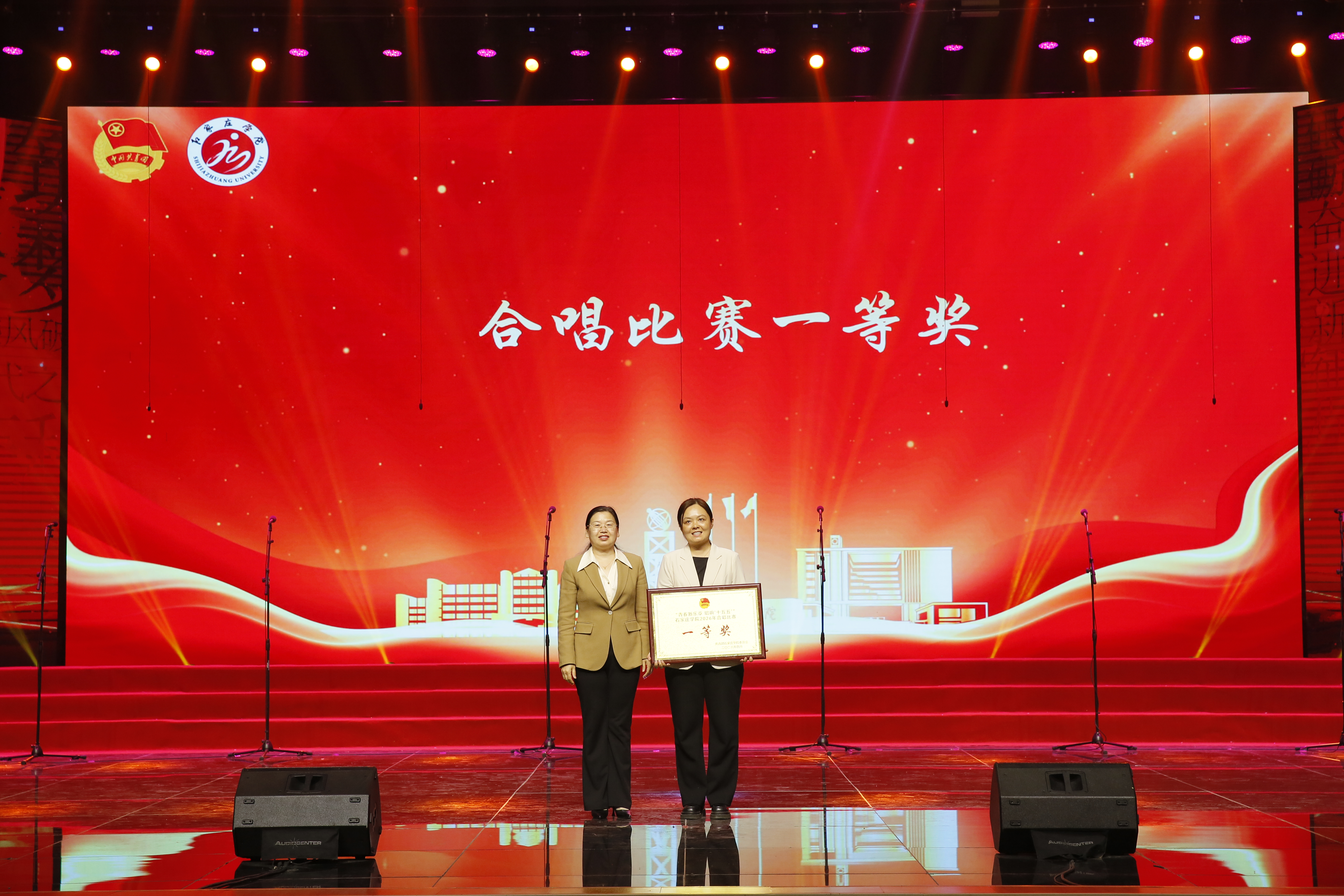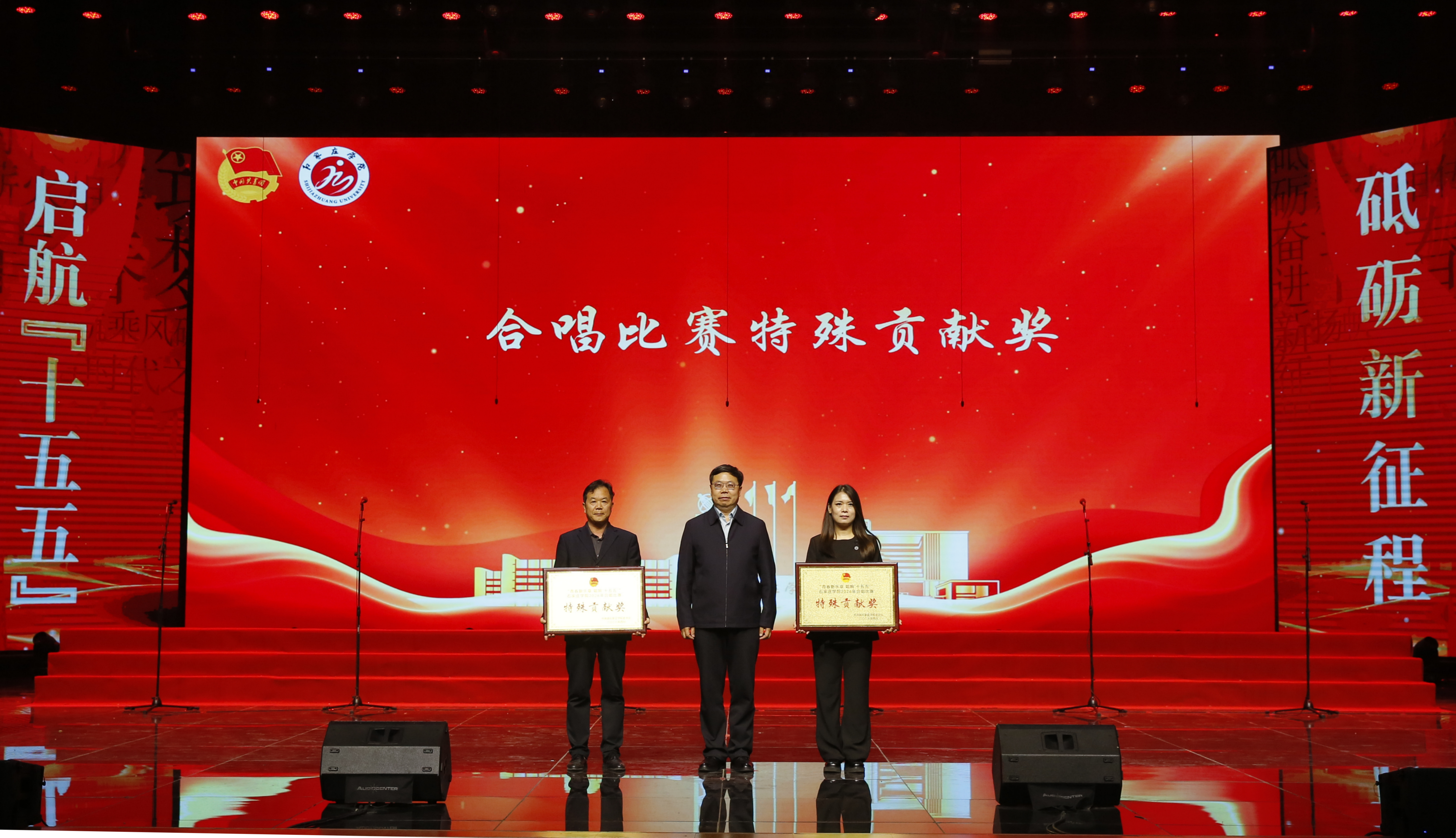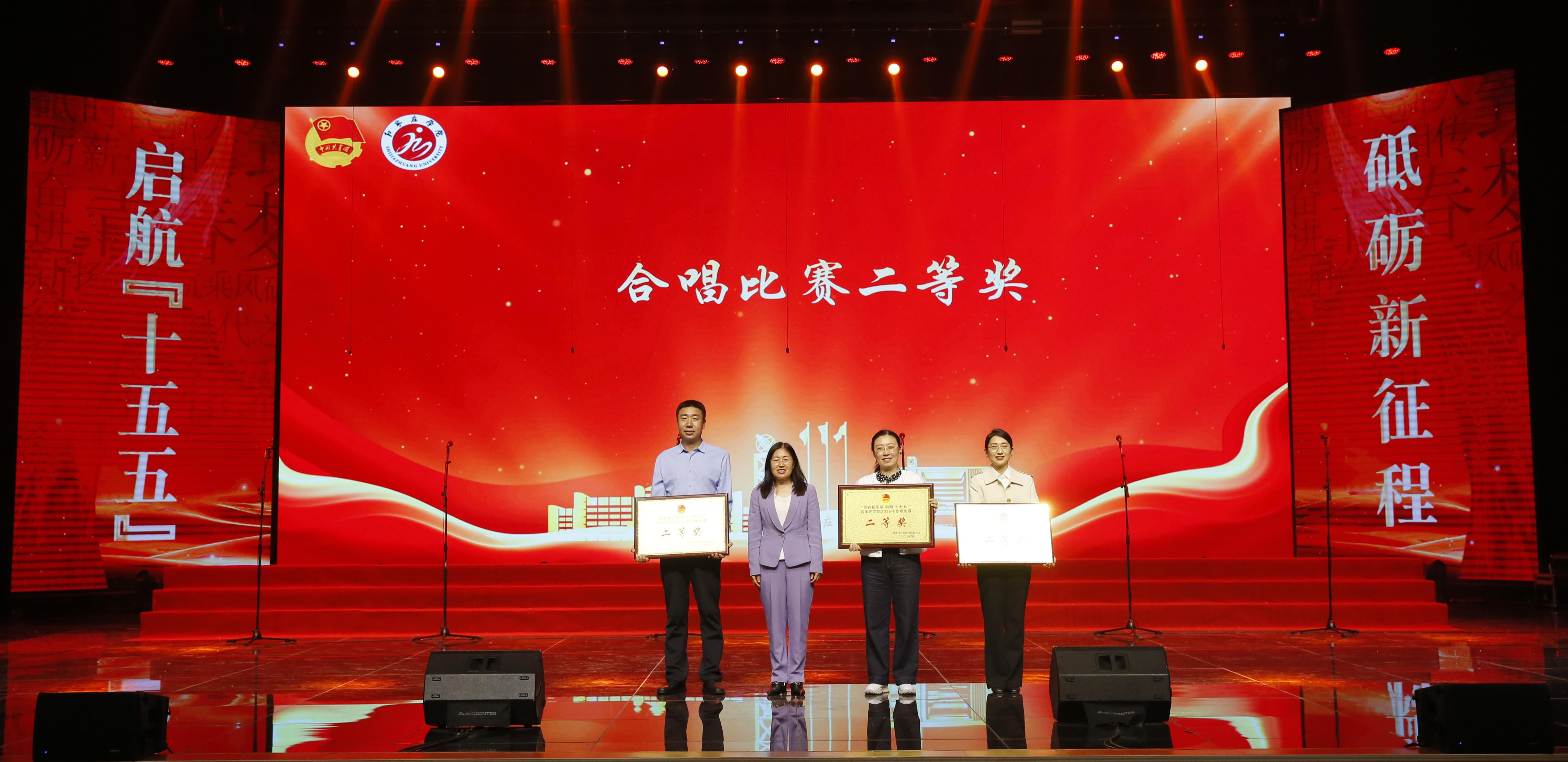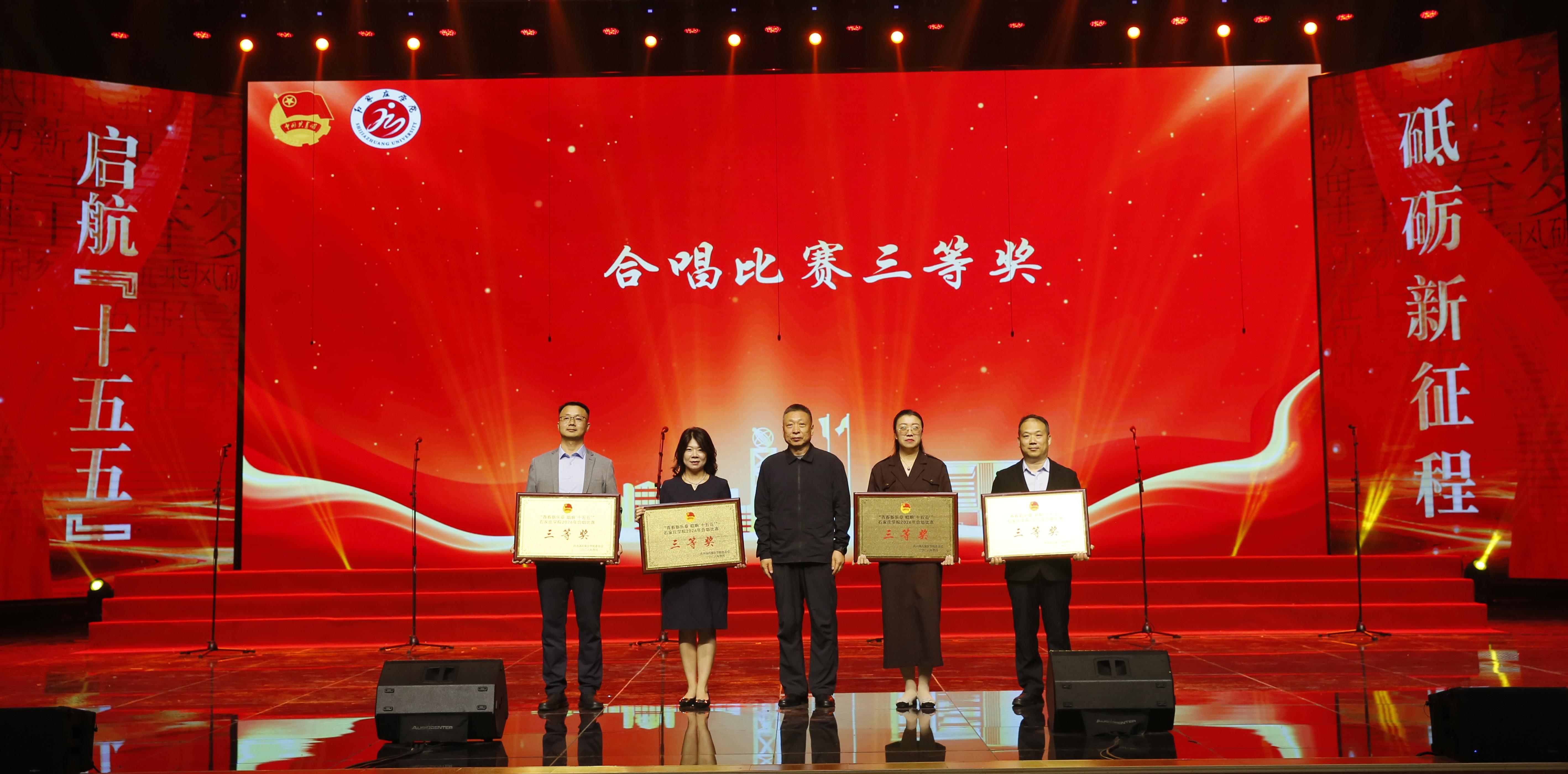 4月23日下午,我校“青春新乐章唱响‘十五五’”2026年合唱比赛暨五四表彰大会在尚文礼堂举行。校长王永芹,副校长冯宝强,副校长李娟,纪委书记李惠林出席活动并为获奖单位及个人颁奖。中层干部、团总支书记、辅导员、师生代表及各学院参赛人员共2000余人参加本次活动。