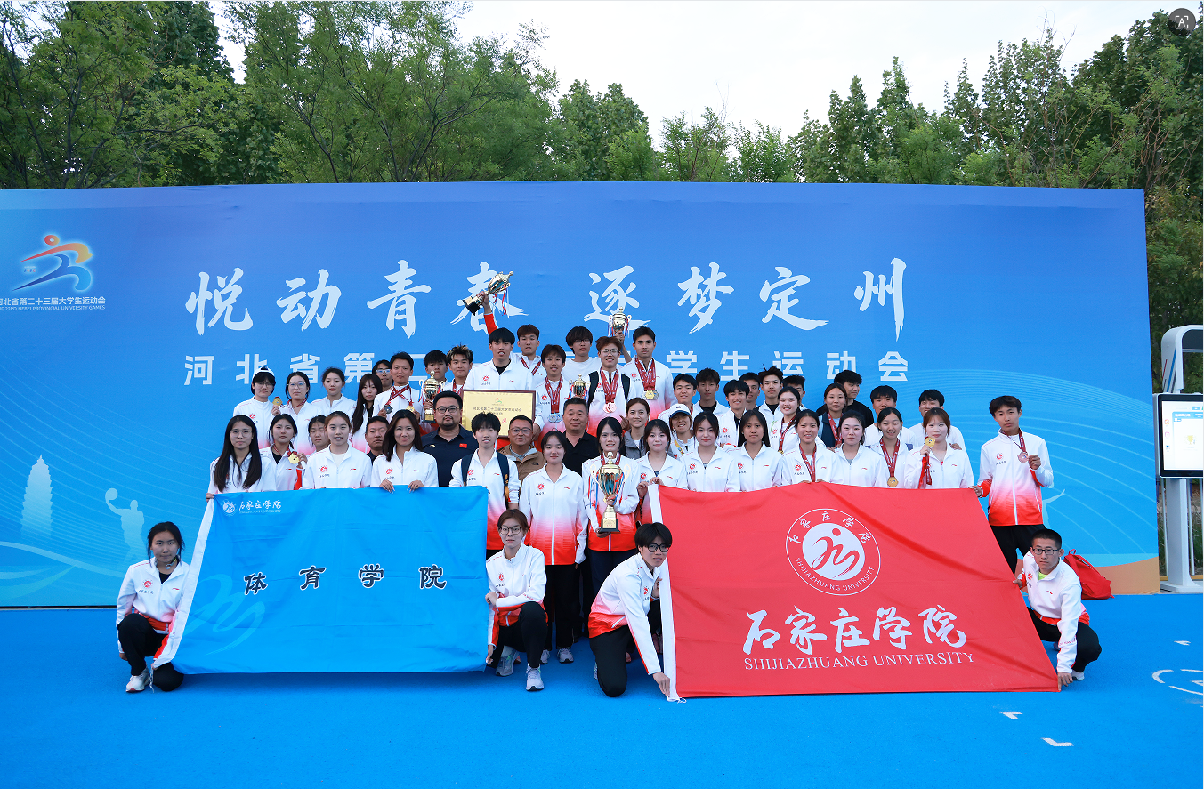 4月25日,河北省第二十三届大学生运动会在定州中学圆满落幕。我校代表团再创佳绩,荣获“体育道德风尚奖”;女子田径丙组(普通高校体育专业组)团体总分第一名,连续三届蝉联女团冠军;男子田径丙组团体荣获亚军;丙组田径总成绩排名第一,连续三届蝉联丙组田径团体总分第一名。其中丙组共获得奖牌5金7银6铜,甲组(普通高校非体育学生组)共获得奖牌1金5铜,打破9项学校记录。