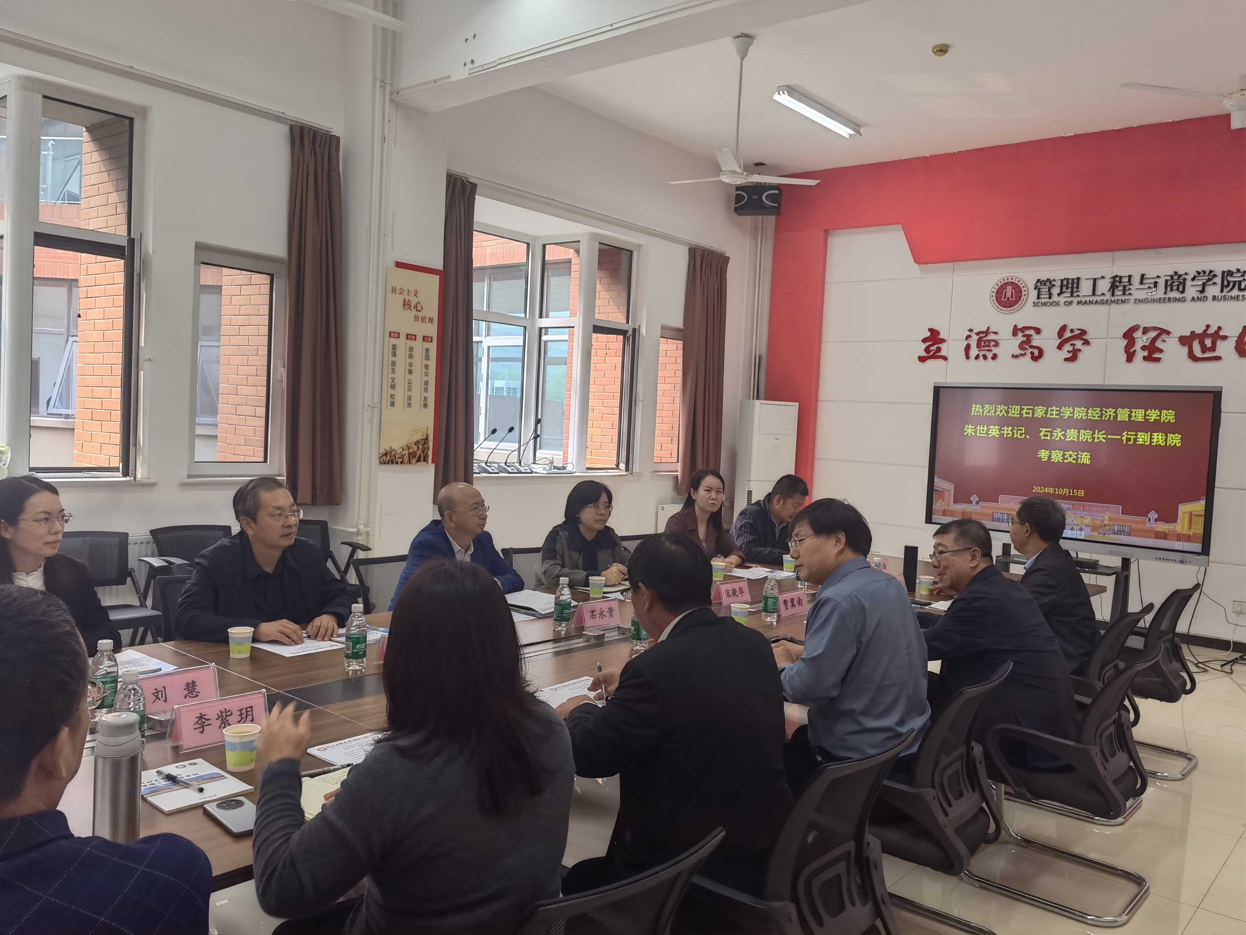 10月15日,经济管理学院领导班子携学院骨干教师赴河北工程大学管理工程与商学院进行考察交流,学习硕士点申报和建设经验并探讨硕士研究生联合培养等工作。一行人受到河北工程大学管理工程与商学院书记曹东林、院长王彦林、副书记李紫玥、副院长贾冀南和教师骨干代表的热烈欢迎与热情接待。