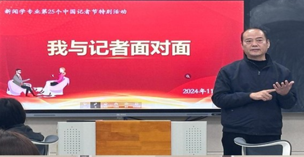 11月8日,在第25个中国记者节到来之际,新闻与传媒学院特别邀请了河北广播电视台新闻频率一线记者走进校园,与师生开展了“我与记者面对面”交流活动。新闻与传媒学院副院长、新闻教研室主任、部分专业教师及学生代表共50余人参加活动。