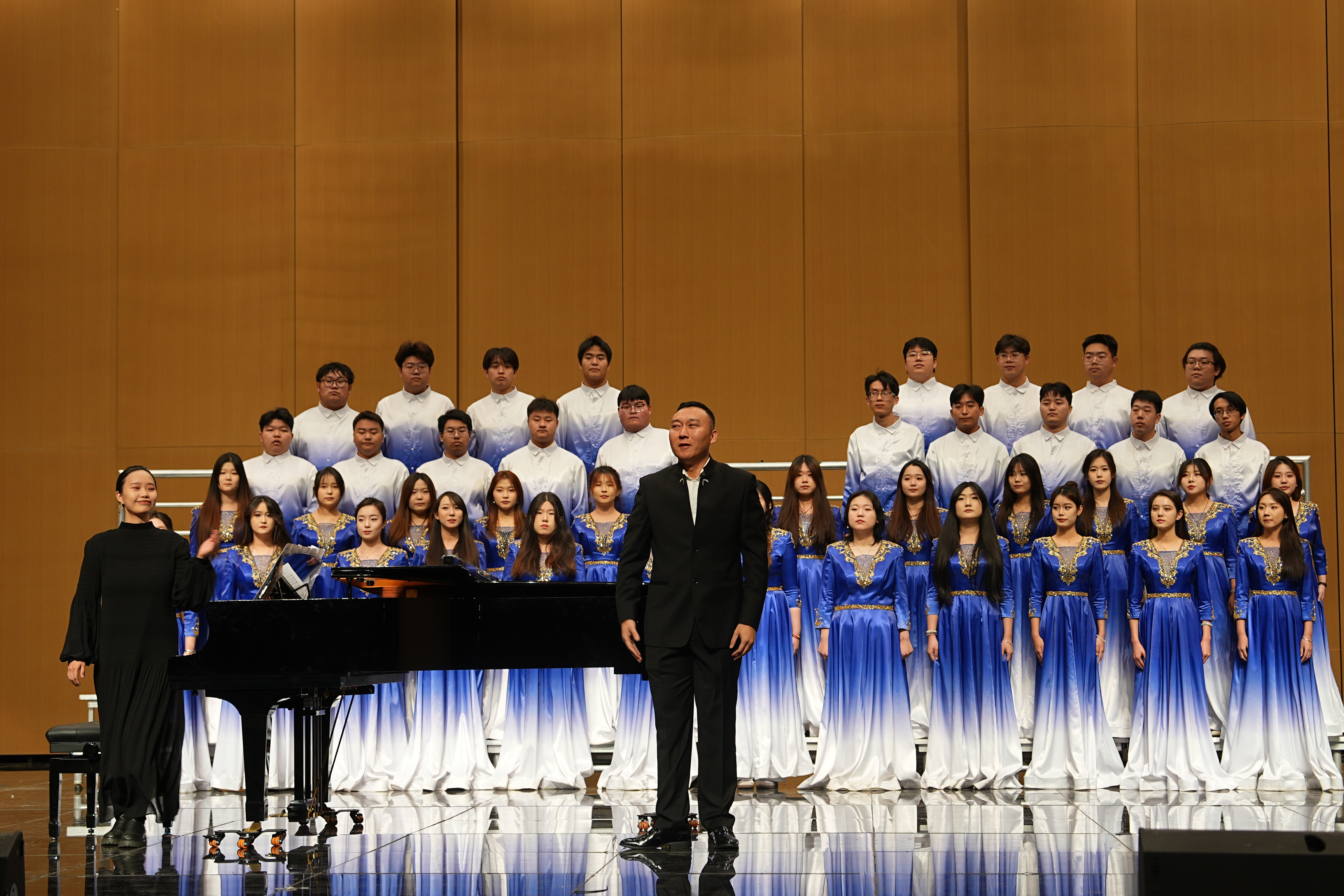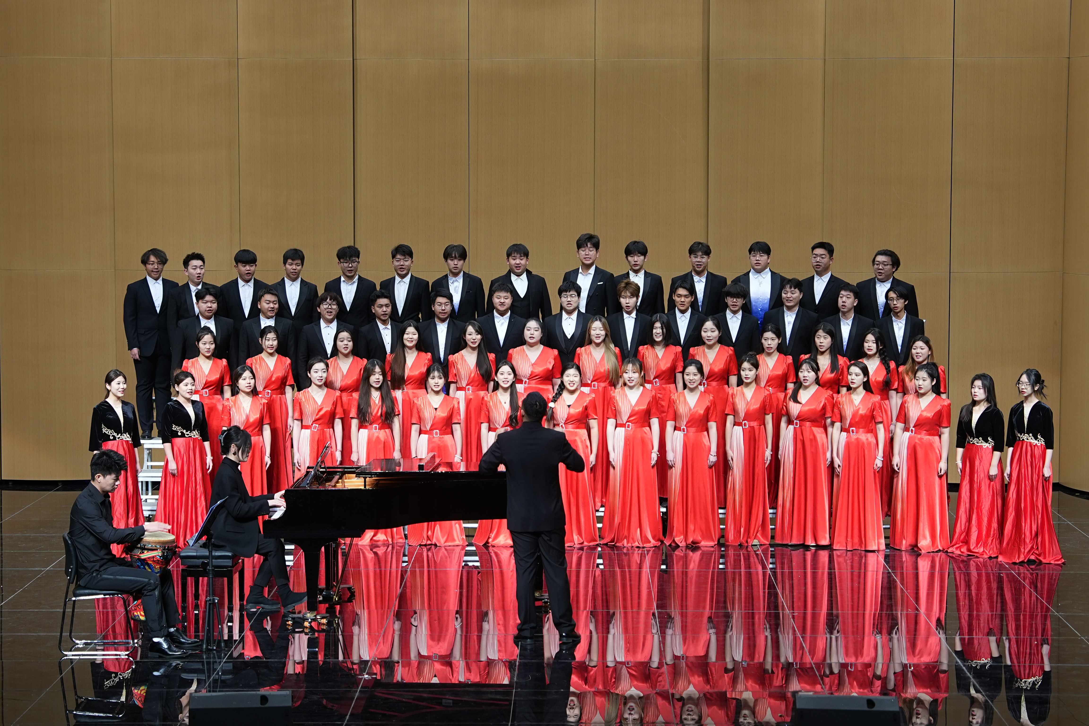 岁聿云暮,乐赴新程。12月26日晚,由我校尚乐合唱团与河北省退役军人合唱团联袂出演的“铸魂追梦 和谐之声—2025合唱新年音乐会”在南校区尚文礼堂成功举办。河北省艺术中心艺术总监、国家一级指挥赵涛,中国合唱协会理事、河北省音乐家协会合唱艺术委员会副会长靳云卓,河北交响乐团副团长刘世纲,河北师范大学音乐学院副教授驼岭应邀出席。来自意大利帕多瓦音乐学院的教授同我校师生及社会各界来宾700余人观赏了音乐会。