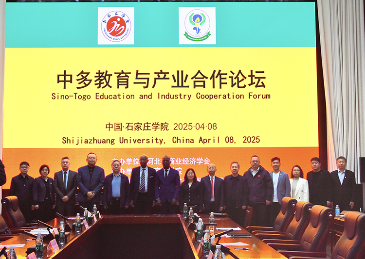 2025年4月8日,中多教育及产业发展合作论坛在我校举办。本次论坛由河北省商业经济学会主办,我校经济管理学院与国际交流中心联合承办,副校长李娟出席论坛。多哥洛美大学信息对外关系、合作和服务主任Koffi Nutefé TSIGBE与理工学院院长Kondo Hloindo ADJALLAH,河北商业经济学会、河北省企业文化协会、河北省物流协会、河北省外企服务协会、河北省商业联合会、河北省人力资源开发研究会等领导专家,经济管理学院与国际交流中心领导班子参加论坛。