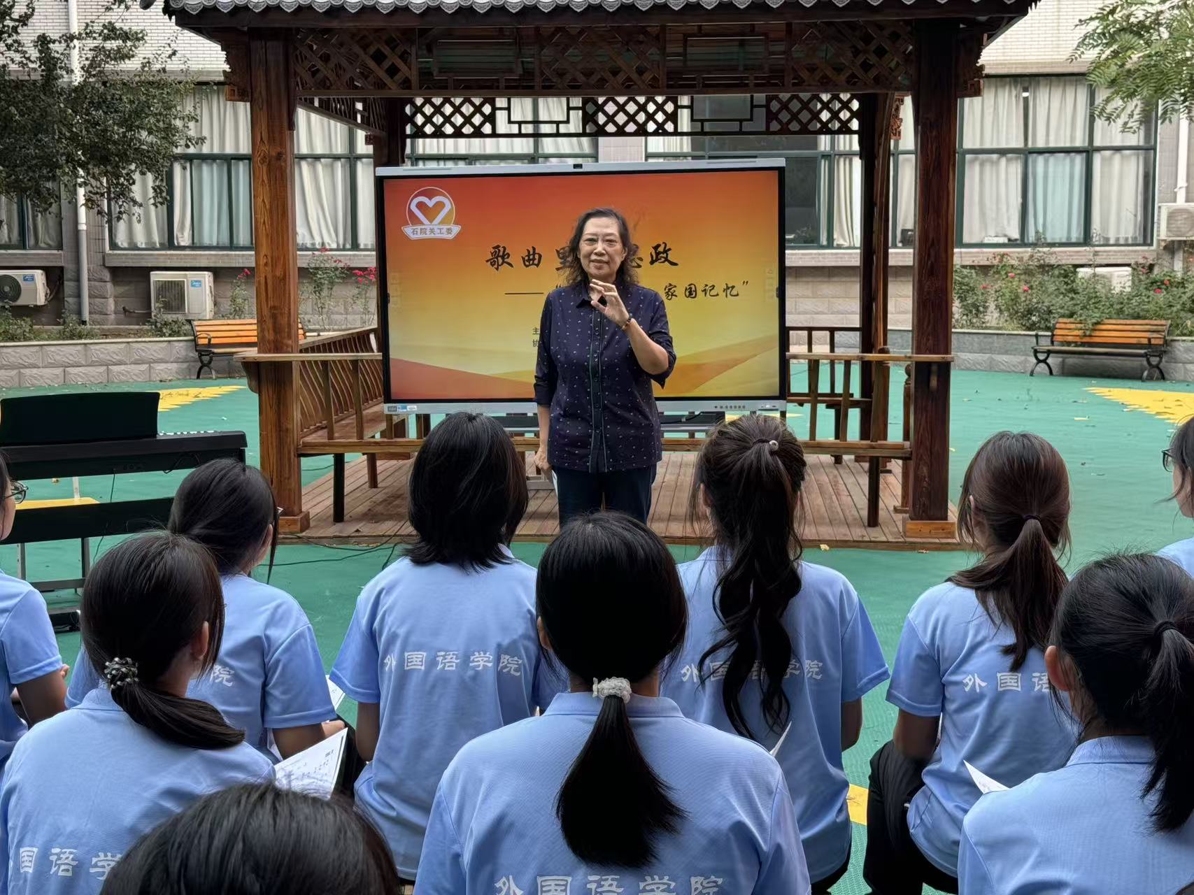 为纪念中国人民抗日战争暨世界反法西斯战争胜利80周年,深化爱国主义教育,9月29日,学校关心下一代工作委员会联合外国语学院举办了“歌曲里的思政——红色旋律·家国记忆”主题活动。校关工委常务副主任张海燕出席,外国语学院领导班子及师生代表参加活动。