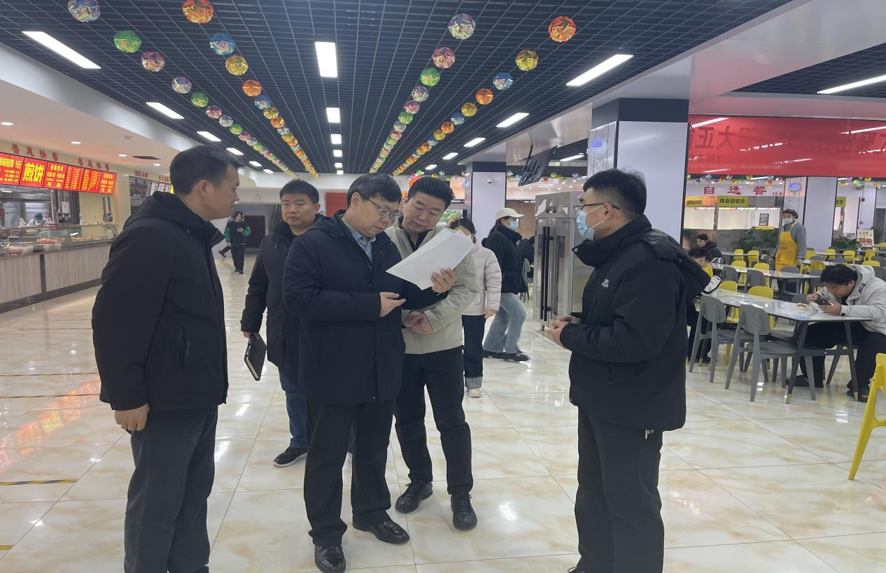 冯宝强先后前往南北校区学生食堂,实地察看了食堂后厨操作间、食材存储仓库、餐具清洗消毒区、消防设施设备、燃气使用点位、各类台账记录情况及就餐大厅等重点区域。