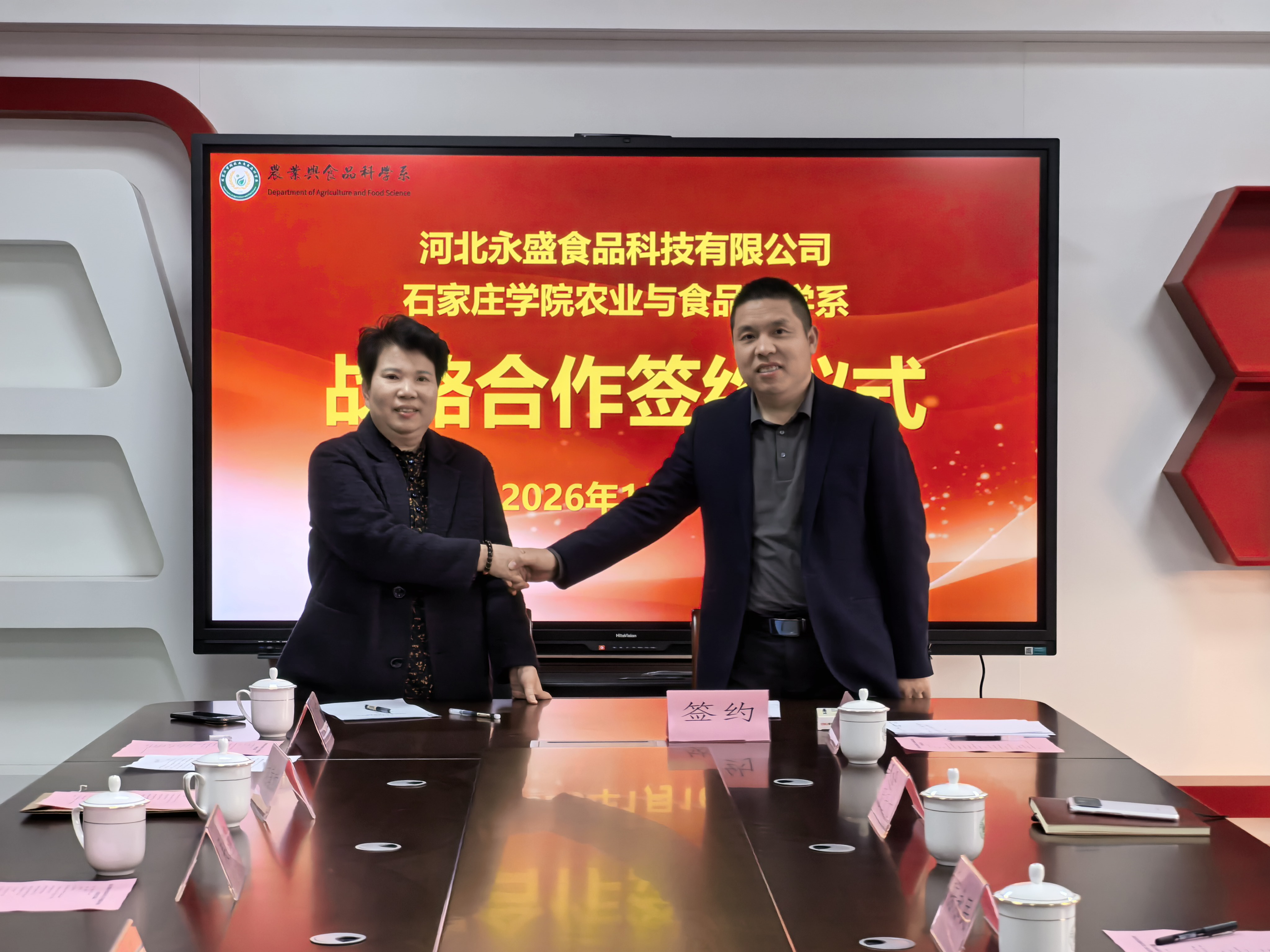 随后,农业与食品科学系与河北永盛食品科技有限公司签订了战略合作协议。