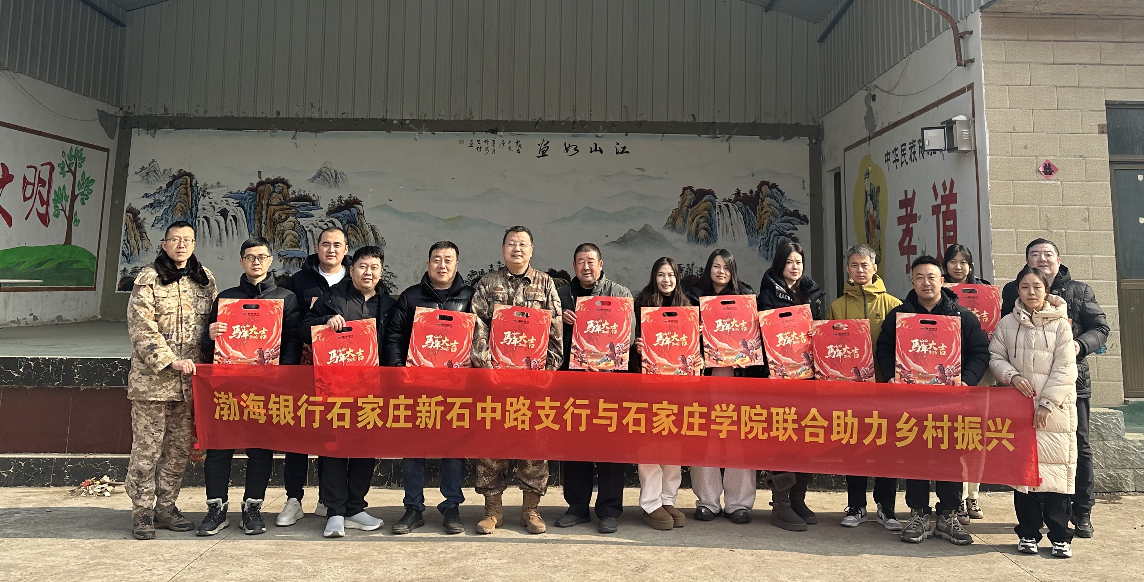 1月31日,我校驻平山县安里村工作队携手渤海银行石家庄新石中路支行,赴安里村开展春节慰问活动,为村民送上春联、提包、儿童玩具等慰问品,传递新春祝福。