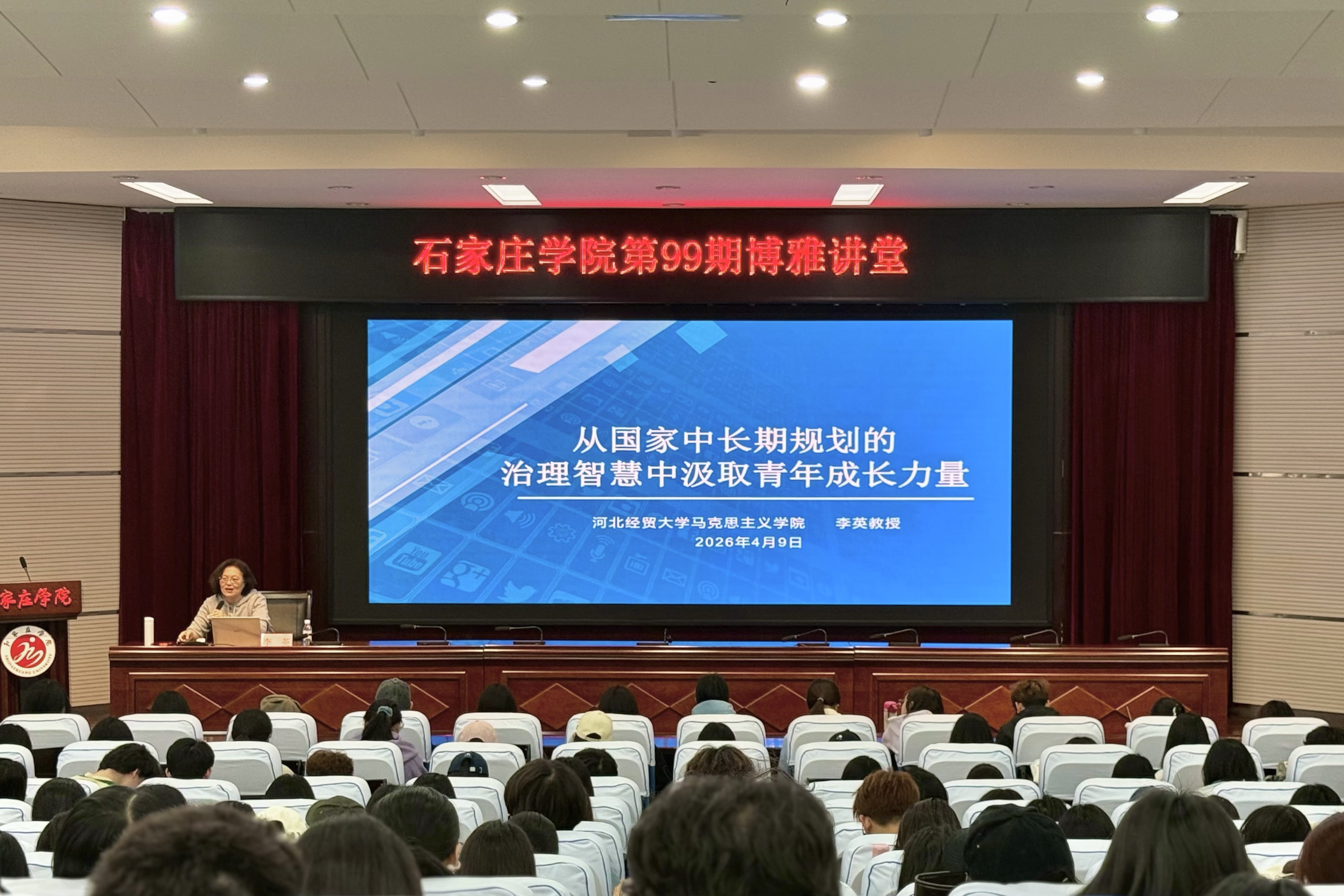 4月9日,我校举办第99期博雅讲堂,特邀河北经贸大学马克思主义学院院长李英教授担任主讲,马克思主义学院、新闻与传媒学院、法学与社会学院和外国语学院250余名学生代表现场聆听。