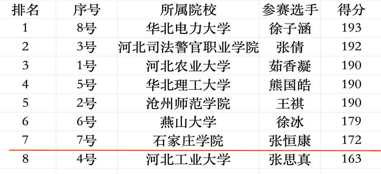 法学与社会学院2022级张恒康代表学校参加比赛,该同学凭借扎实的宪法知识储备、清晰的逻辑表达与沉稳的临场发挥,在全省众多高校参赛选手的激烈角逐中脱颖而出,最终荣获第七名的优异成绩,充分展现了我校学子的法治素养与综合能力。