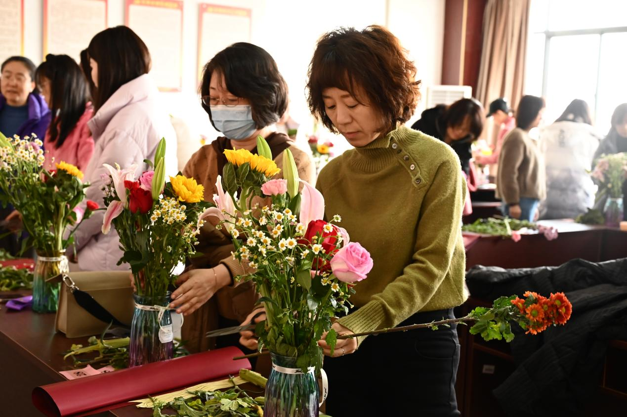 在活动现场,女职工们纷纷动手,精心挑选着自己喜欢的花朵和枝叶,认真搭配,制作出了一幅幅精美的插花作品。大家一边插花,一边交流心得,现场气氛热烈而温馨。通过一个小时的精心制作,一篮篮各具特色,灿烂缤纷的插花作品新鲜出炉,老师们手捧佳作欣然合影留念,一张张笑脸上洋溢着幸福感和成就感。
