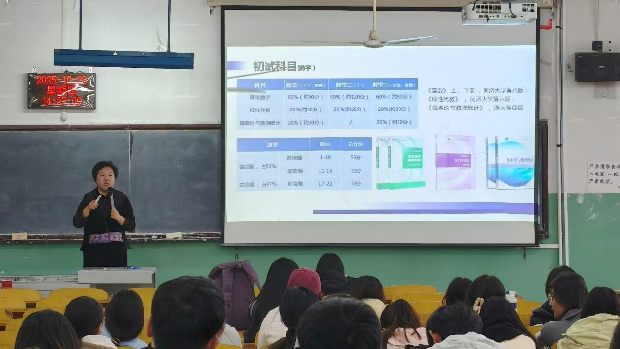 为帮助大三学子精准把握考研方向,科学规划备考路径,近日,我院在主教学楼三楼东阶教室成功举办“研途筑梦 赢在选择”考研规划专题讲座。本次讲座吸引了2023级各专业近300名学生参与,现场座无虚席,气氛热烈。