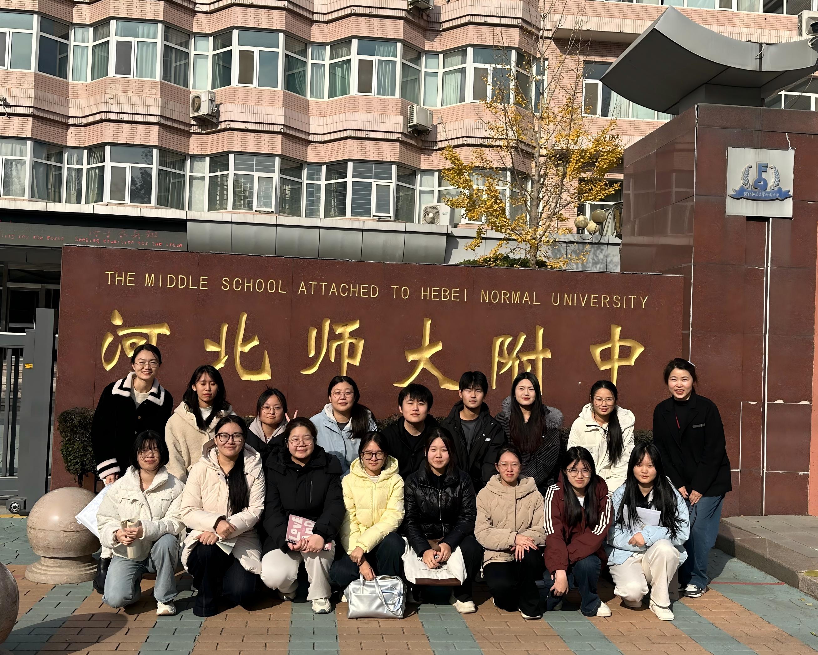 2025年11月17日至21日,2023级化学专业全体学生在王妍、郝红芳、孙丽、孙翠红四位教师的带领下,赴石家庄高新区外国语学校、东南实验中学、河北师大附中及第54中学开展为期一周的教育见习活动。通过沉浸式观摩与互动,同学们在教学设计、技术赋能、师德感悟等方面获得多维成长。