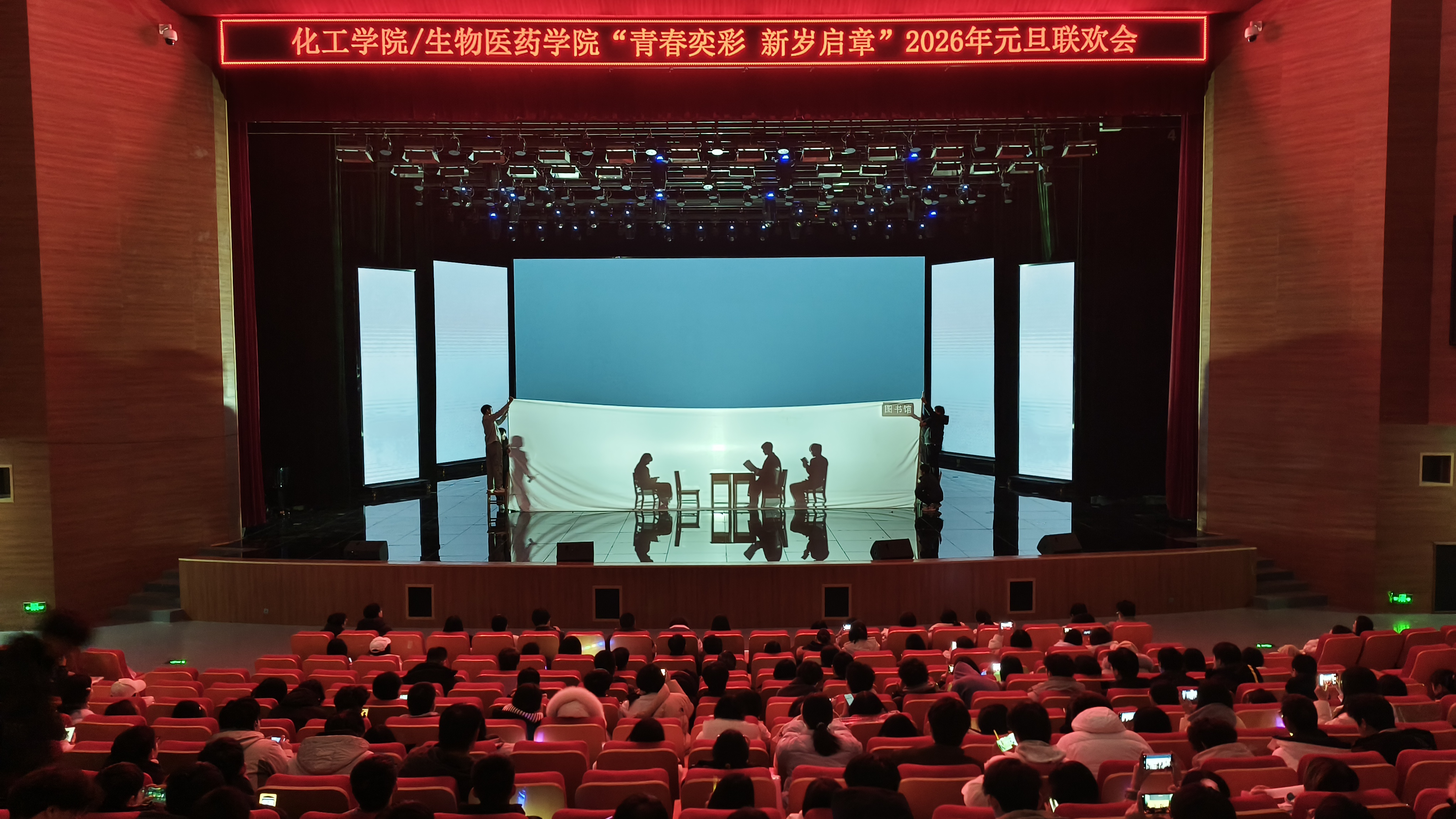 12月26日,化工学院/生物医药学院在南校区尚文礼堂举办了以“青春奕彩 新岁启章”为主题的2026年元旦联欢会,院系领导班子、教师代表以及500余名学生观看了演出。