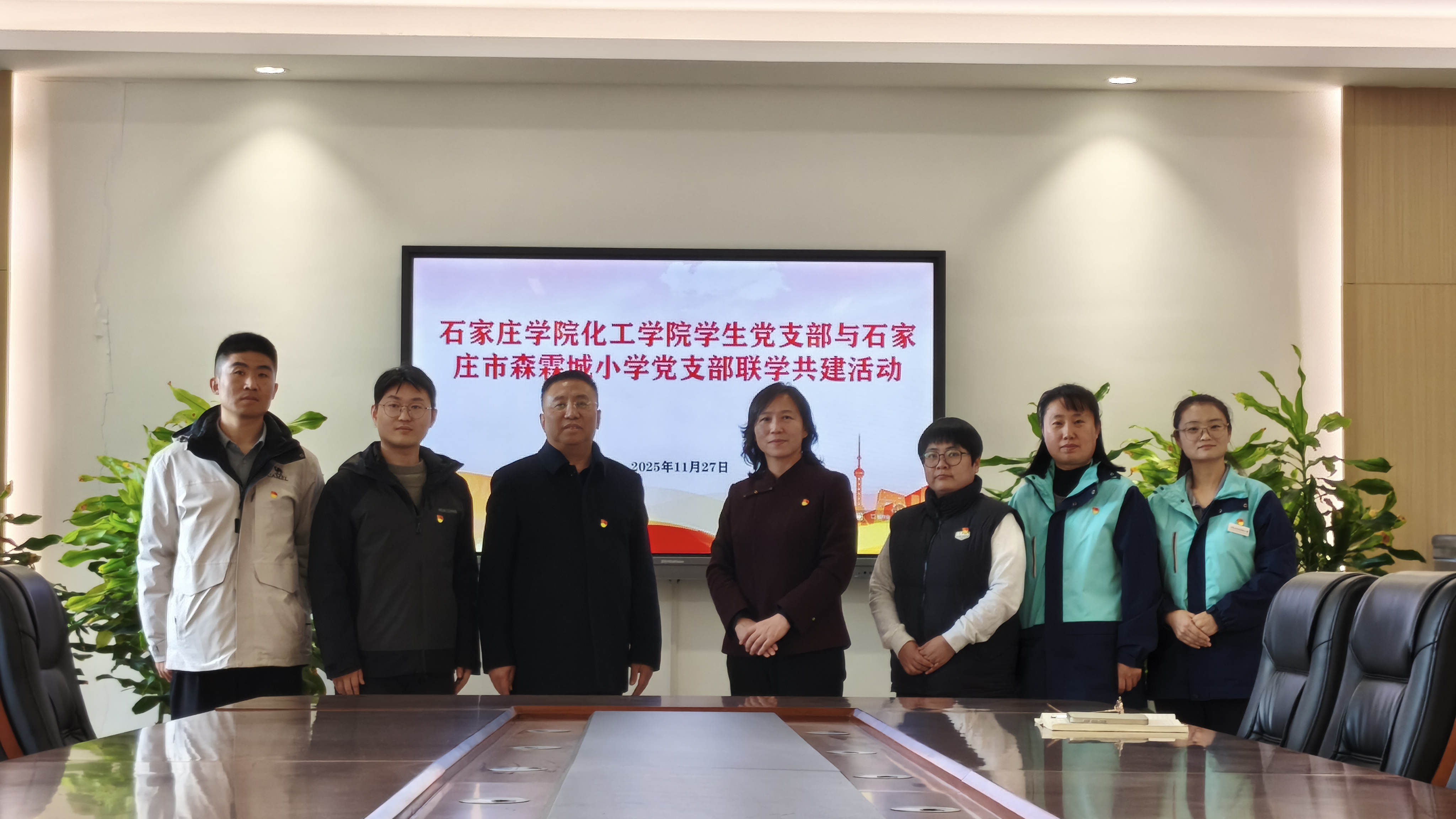11月27日下午,我院学生党支部带领50余名师生走进石家庄市森霖城小学,开展联学共建活动,我院党总支书记王震,森霖城小学党支部书记、校长陆巧月出席仪式。双方党支部分别介绍了各自支部的基本情况和党建工作特色,并就未来合作方向进行了深入交流。双方将围绕“大中小学思政课一体化”建设目标,在理论共学、文艺慰问、实践体验等方面建立常态化合作机制,推动形成资源共享、优势互补、协同育人的良好格局。