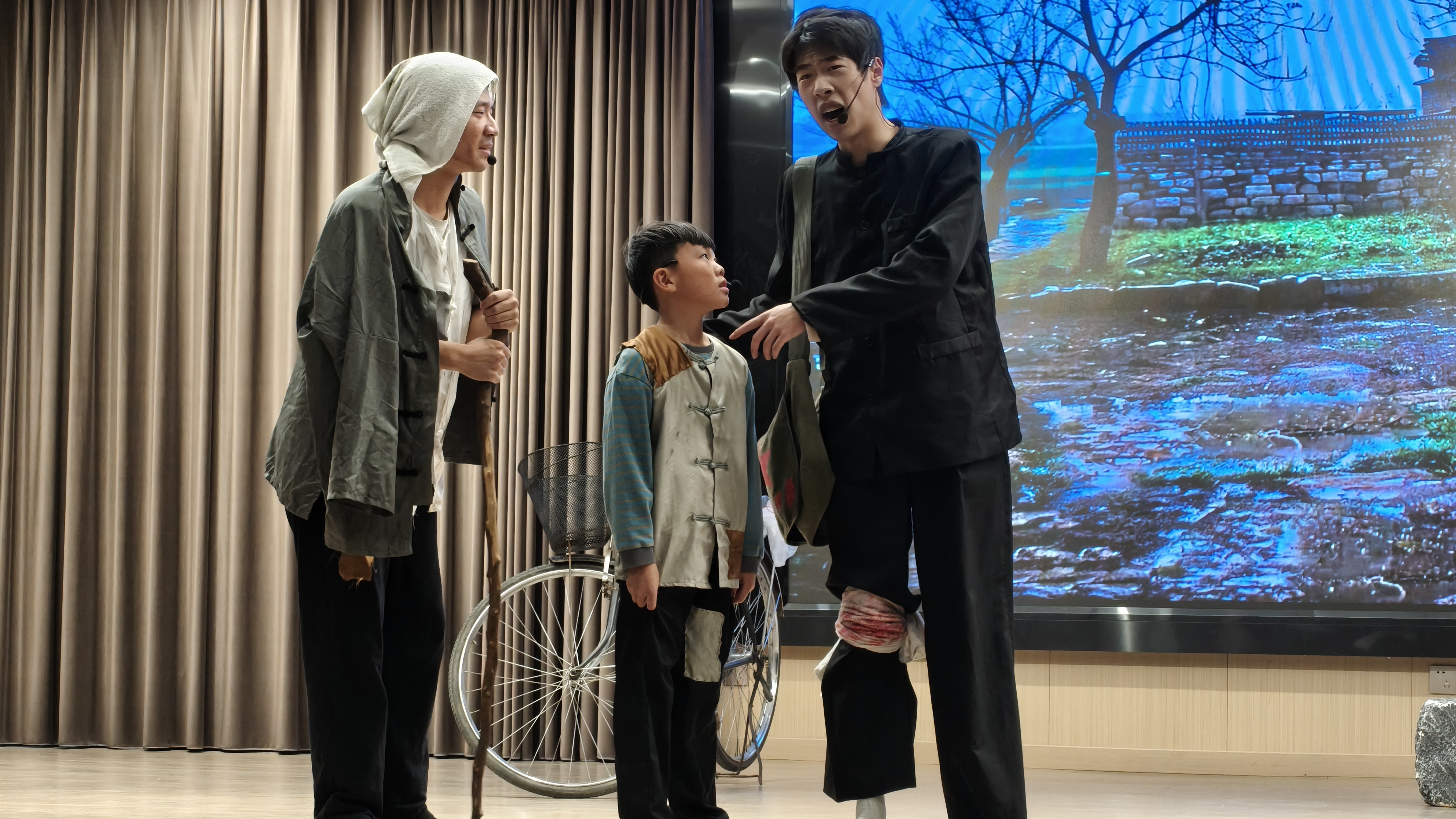 演出结束后,在剧中饰演贫困儿童“黄家雀”的森霖城小学学生李喆分享道:“刚开始排练时,我总是演不出饥饿困苦的感觉。后来大学生哥哥姐姐们给我讲了很多容爷爷帮助过的孩子的真实故事,我才明白,黄家雀的‘饿’不只是肚子饿,更是对读书的渴望。现在我终于懂了什么是‘一盏灯’的力量。”