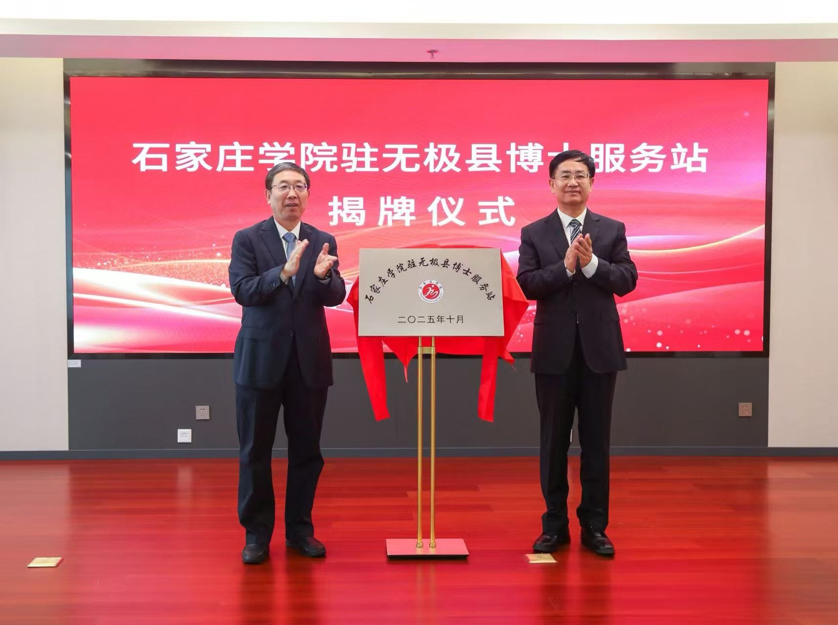 10月11日,我校驻无极县博士服务站在北京大学经济学院石家庄教科研基地举行揭牌仪式。无极县委书记封立新,县委副书记、县长刘炎,县委副书记严凤,我校党委书记陈亮,副校长冯宝强出席活动。