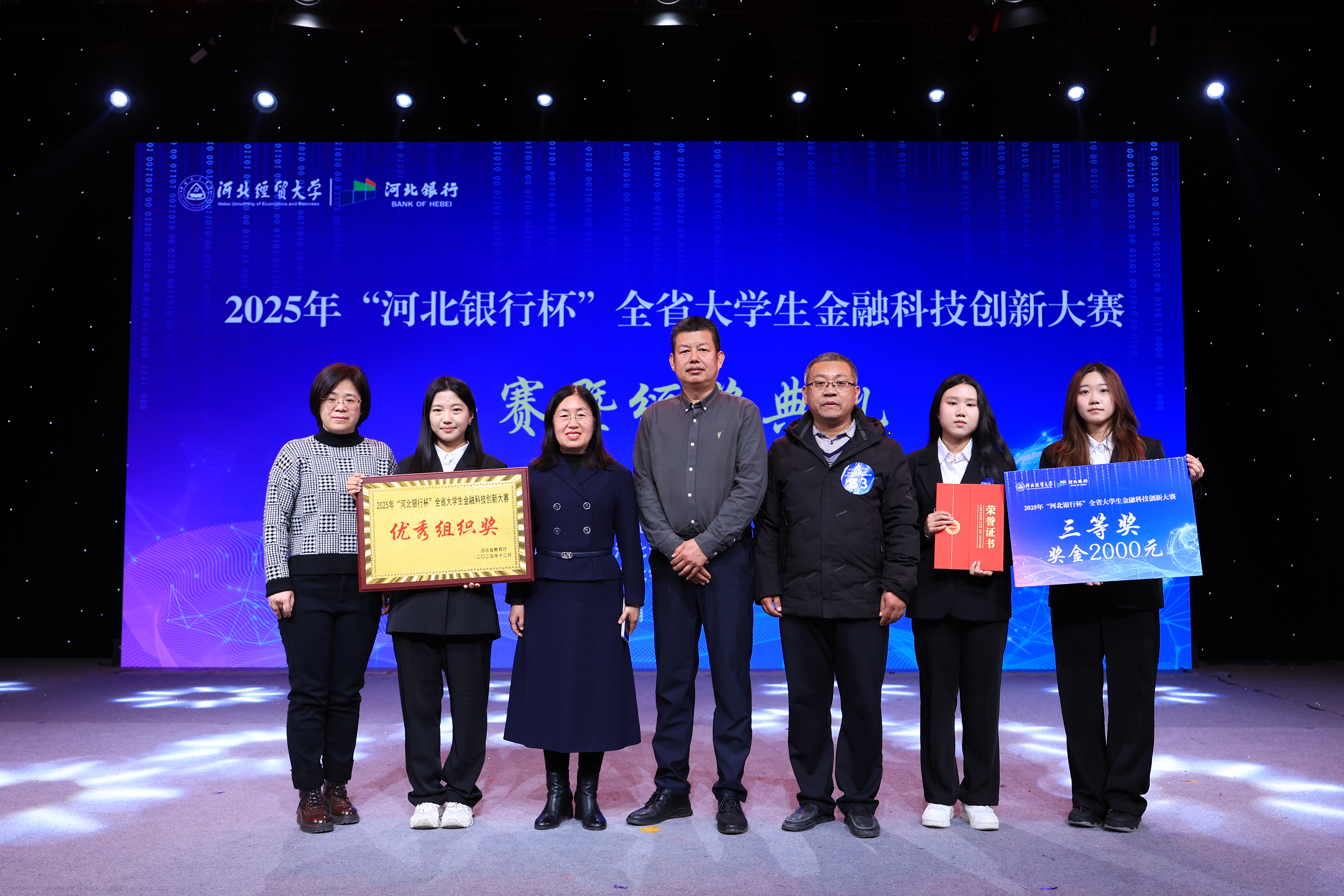 近日,2025“河北银行杯”全省大学生金融科技创新大赛决赛在石家庄广播电视台3号演播大厅举行。由我院2023级金融工程专业学生卜佳萌、袁梦凡、王一曼组成的“智灌先锋队”凭借作品《智绘乡村:基于数字画像的农村金融“精准滴灌”新模式--数据驱动型金融精准施策方案》斩获B组三等奖。同时,我校荣获优秀组织奖。