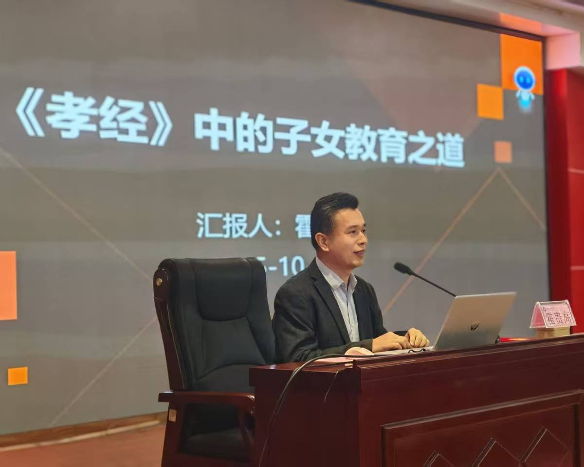 霍贵高老师在讲座中以重阳节蕴含的孝亲敬老传统为切入点,围绕“孝道的本质是成人之道”这一主题展开论述。他指出,《孝经》的思想内核并未过时,其核心要义在于引导个体在自我完善与自我成长的路径中,以“事亲”为实践起点,逐步扩展至对家庭责任的承担与对社会义务的担当。讲座中,王老师结合《孝经》“始于事亲,中于事君,终于立身”的理念,剖析了从家庭伦理到社会价值的人生发展轨迹。他进一步阐释了家庭教育中“因严教敬、因亲教爱”的原则与方法,强调父母应通过言传身教,培养子女“敬亲”“爱人”的基本品德,并以此为根基,延伸至“忠于职守”与“奉献社会”的更高境界,最终实现“立德立业、追求真理、知行合一、修己安人”的成长目标。霍贵高老师特别指出,孝道并非意味着盲目遵从,而是体现为一种理性自觉与道德审辨。在“不义则争”的原则下,真正的孝道倡导在坚守道义的基础上进行理性沟通,既促进个人道德的完善,也推动家庭关系在良性互动中实现和谐发展。