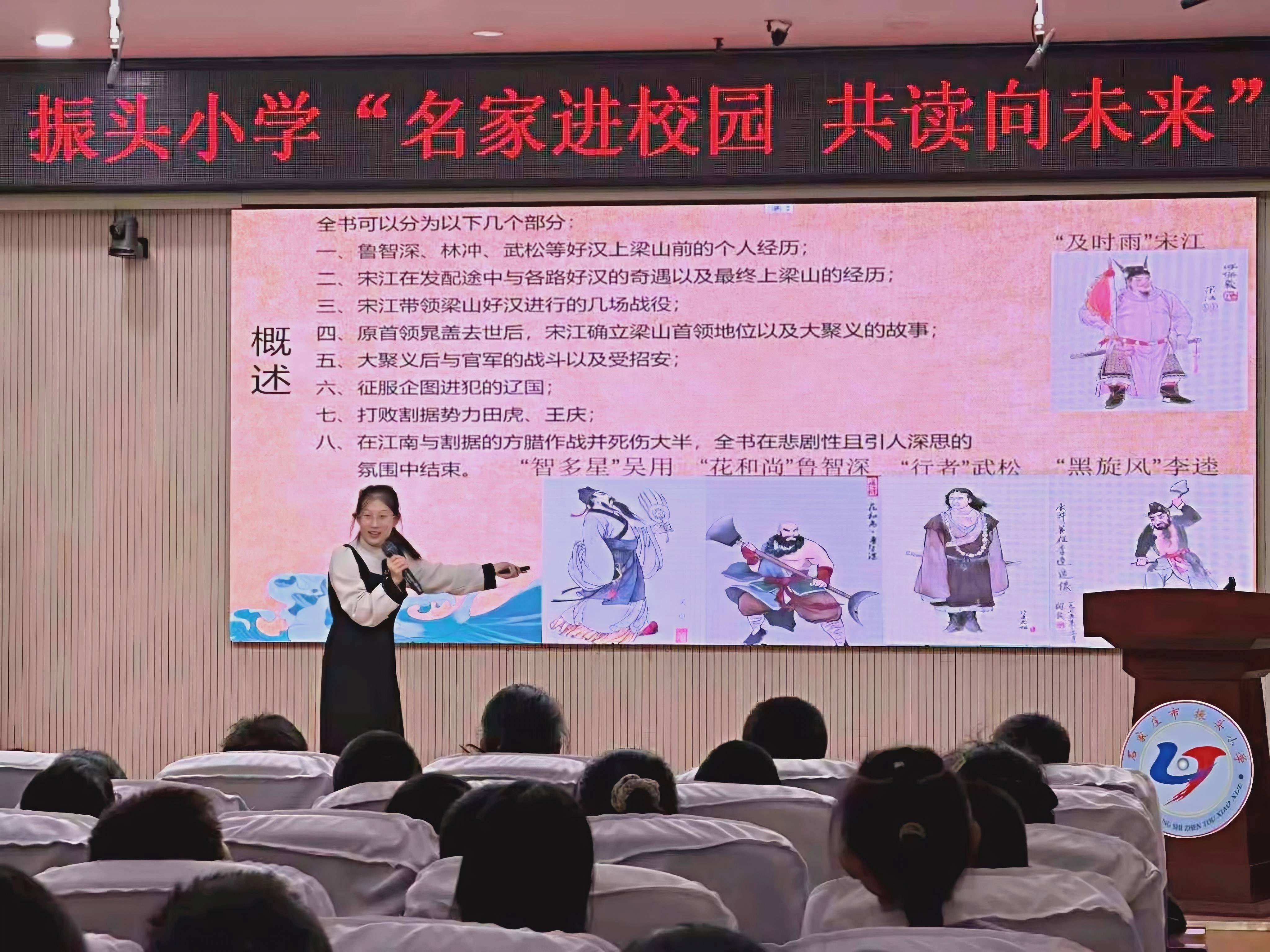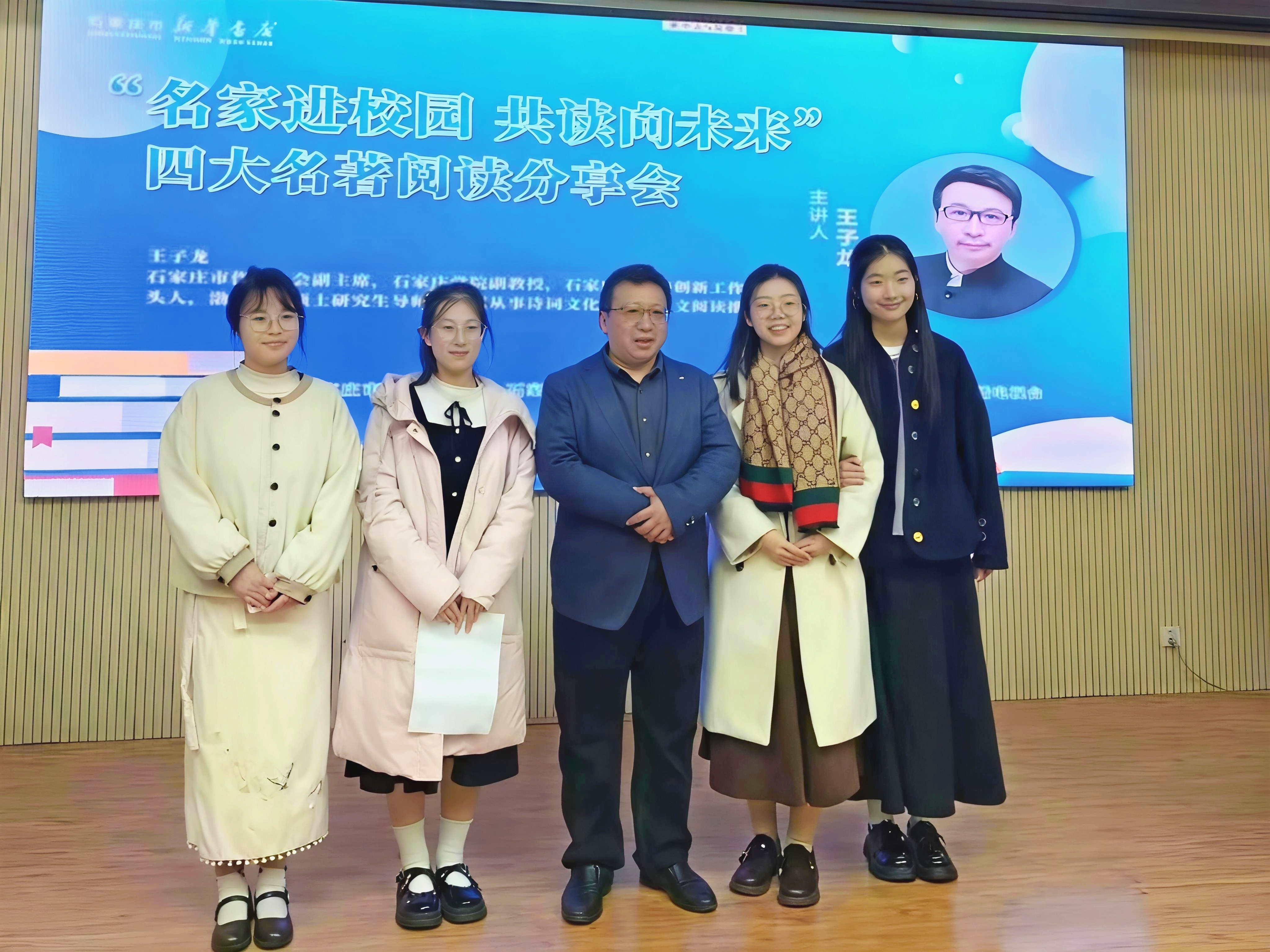 为提升中小学生文化素养和阅读能力,让校园氤氲浓郁书香。12月18日,石家庄市新华书店联合石家庄市广播电视台、石家庄市作家协会共同开展“名家进校园”主题活动,活动邀请石家庄市作协副主席、市名师创新工作室带头人、文学与历史学院王子龙老师携文史撷英国学社付若微、张宇璇、张文晴、张逸婷四位骨干成员共同走进石家庄市振头小学,开展《四座文峰观沧海——四大名著导读》阅读推广讲座,一同探寻四大名著的奥秘,感受传统文化的魅力。石家庄广播电视台对活动进行了采访和报道。