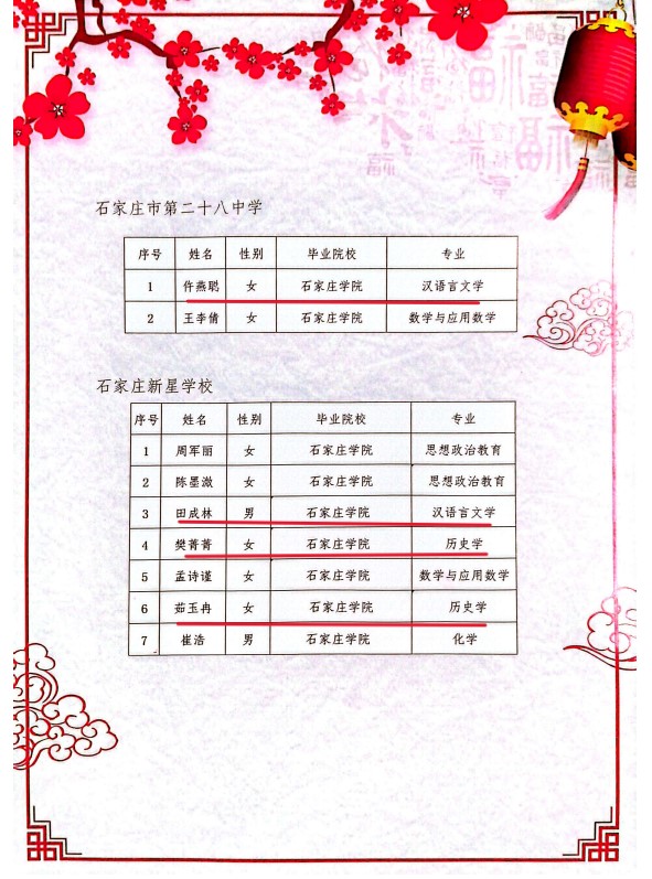 近日,我校收到石家庄市第二十八中学(石家庄新星学校)发来的感谢信,对我校9名2025届师范类应届毕业生的工作表现给予高度评价,其中有4名为我院汉语言文学和历史学专业毕业生。