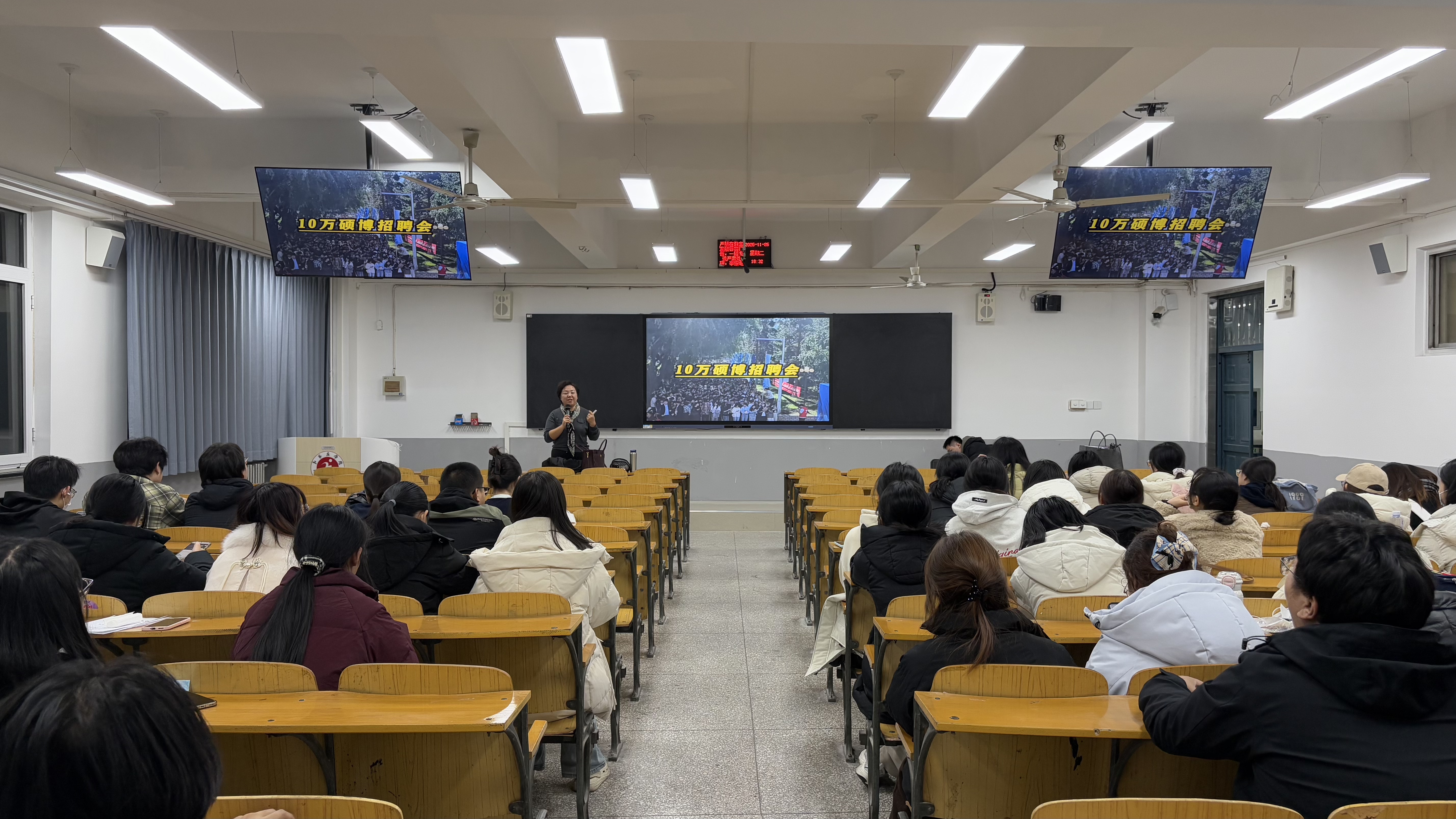 讲座中,范瑞娟围绕四大核心内容展开:一是“十字路口的明智选择”,结合案例与数据,引导学生根据兴趣、能力理性评估考公或考研路径;二是“考公全攻略”,系统讲解国考、省考、选调生的区别、政策及备考要点,打破信息壁垒;三是“考研全攻略”,梳理考研全景图与核心时间轴,详解择校择专业逻辑及各阶段备考策略;四是“大学四年规划图”,分年级给出行动指南,助力学生循序渐进提升综合竞争力。