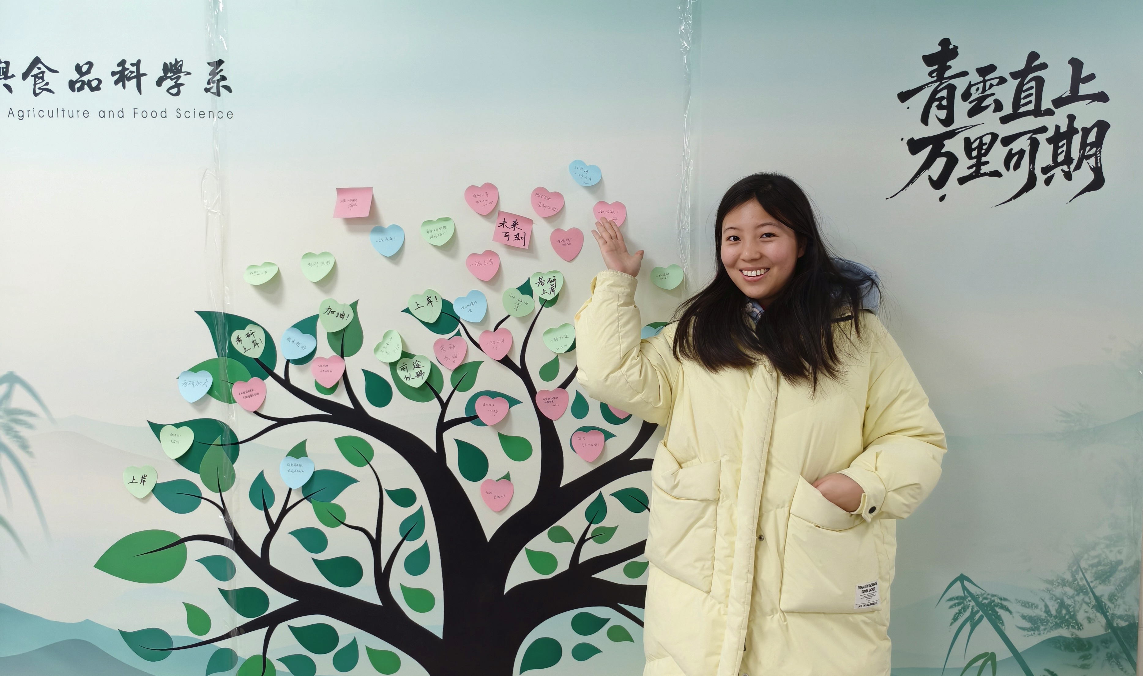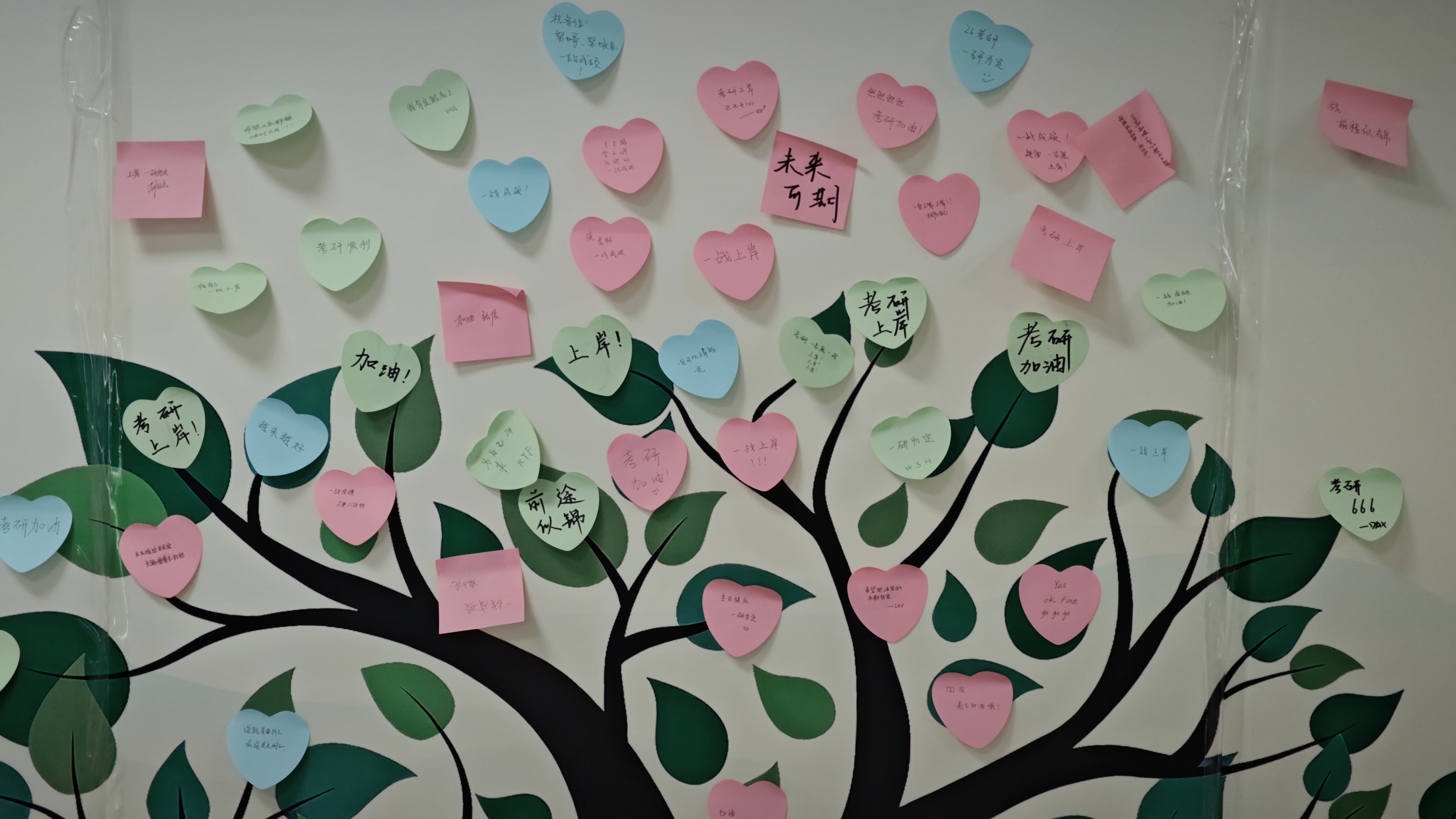 活动现场温馨热烈,特别定制的“考研加油包”成为亮点:内含考试专用文具套装、手写祝福的贺卡及寓意“心想事成”的橙子,每一份礼物都承载着师生们的殷切期望。考研学子们纷纷在签名墙前打卡留念,用铿锵笔迹写下“一战成硕”“金榜题名”等誓言,现场洋溢着昂扬的青春斗志。