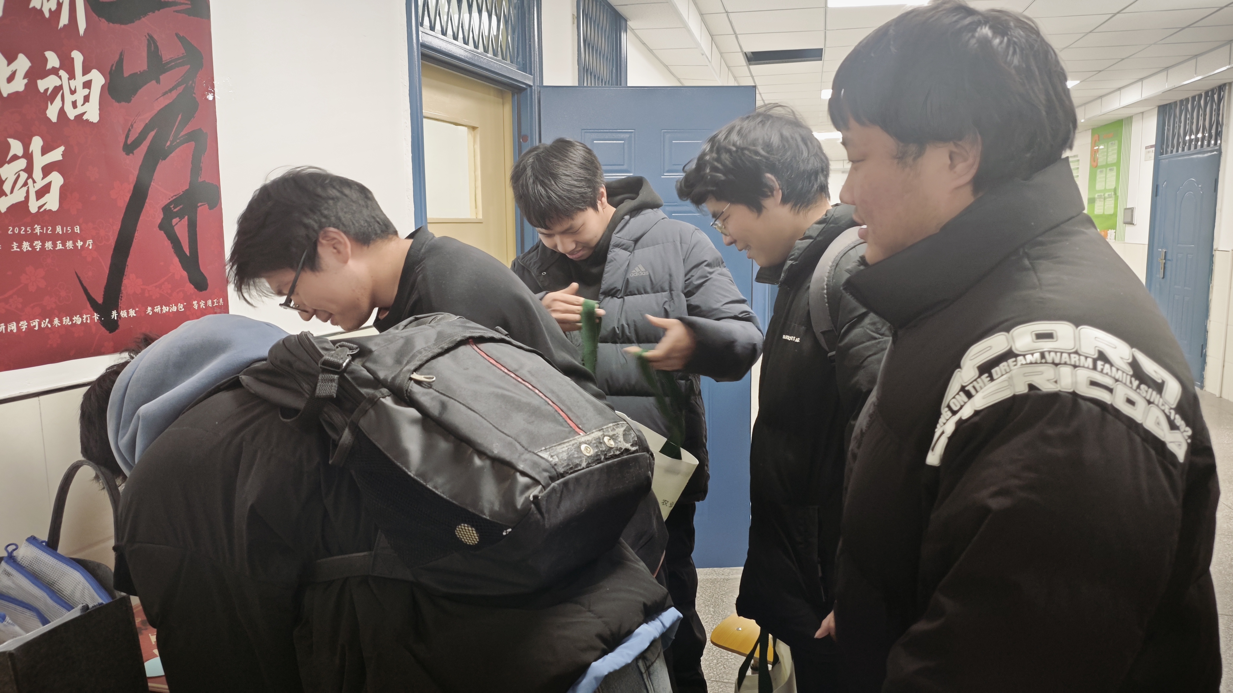 此次加油站活动是我系“暖心护航”考研服务的重要一环,我系负责人表示:“我们希望通过有温度的关怀,帮助同学们缓解焦虑、增强信心。愿每一位追光者都能在考场上绽放光芒,收获理想答卷!”考研学子们手捧“加油包”,脸上洋溢着感动与坚定,纷纷表示将全力以赴,不负期待,用优异成绩回报学校培养。