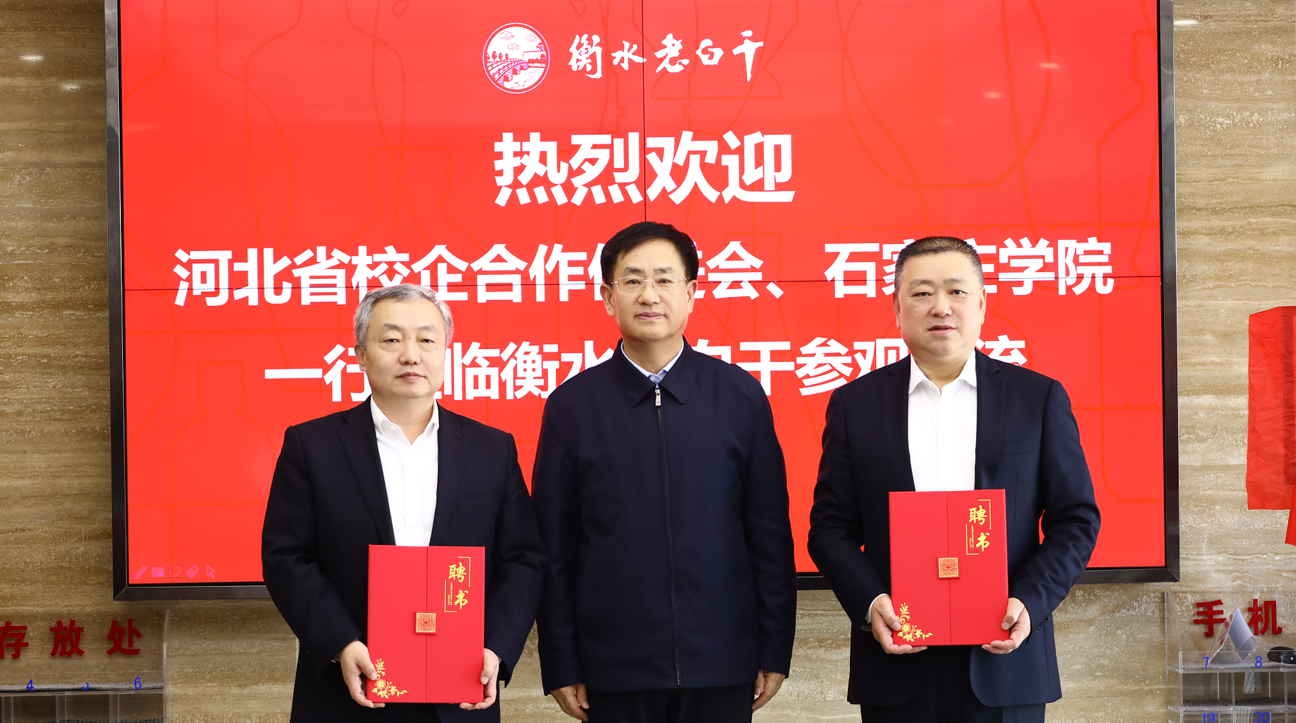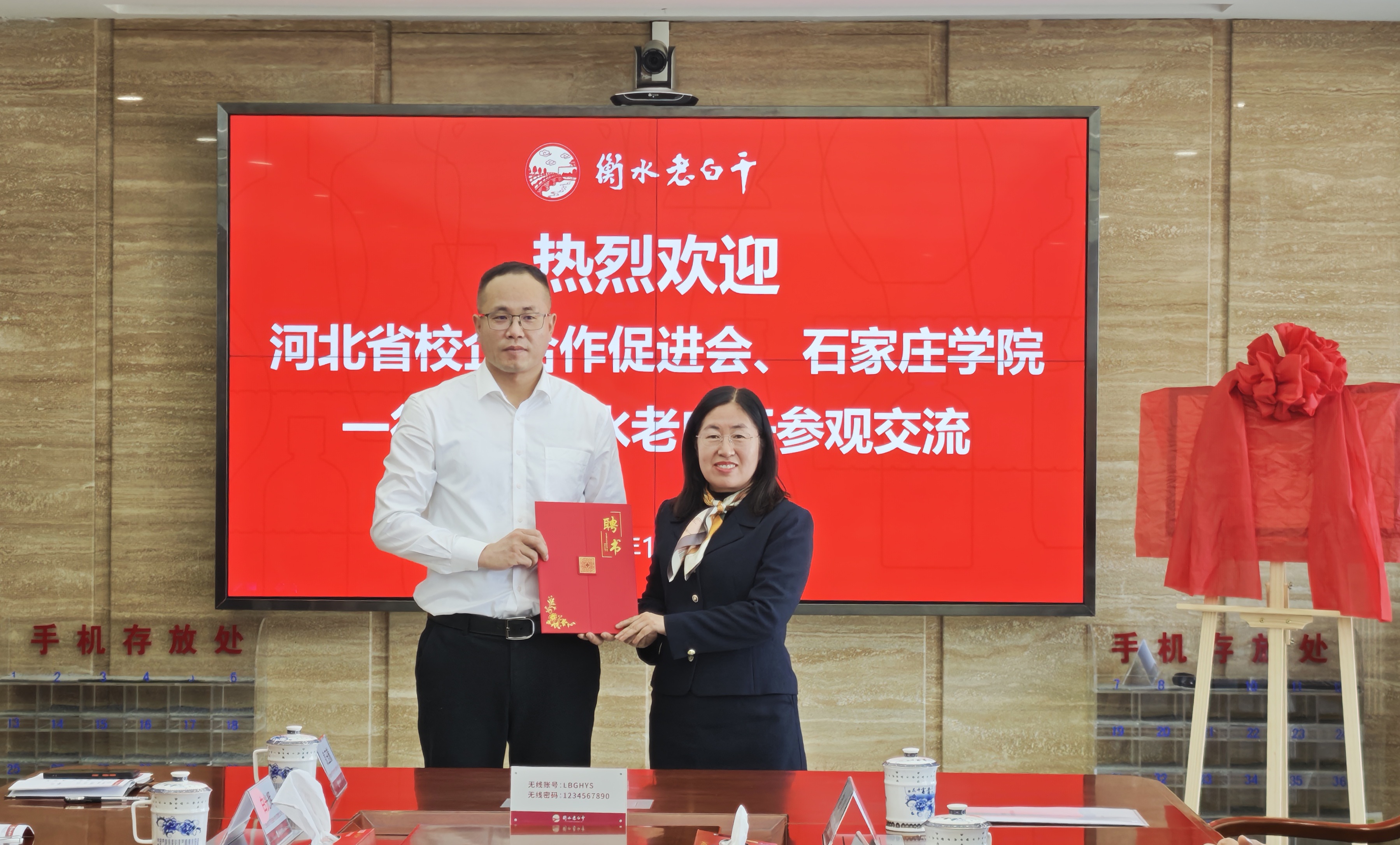 会上,陈亮为河北衡水老白干酒业股份有限公司总经理赵旭东,河北衡水老白干酒业股份有限公司总工程师张煜行颁发“客座教授”聘书,并为“石家庄学院实践教学基地”揭牌,李娟为十八酒坊事业部营销总监刘伟颁发“行业导师”聘书。农业与食品科学系负责人与刘伟代表双方签署了战略合作意向书。