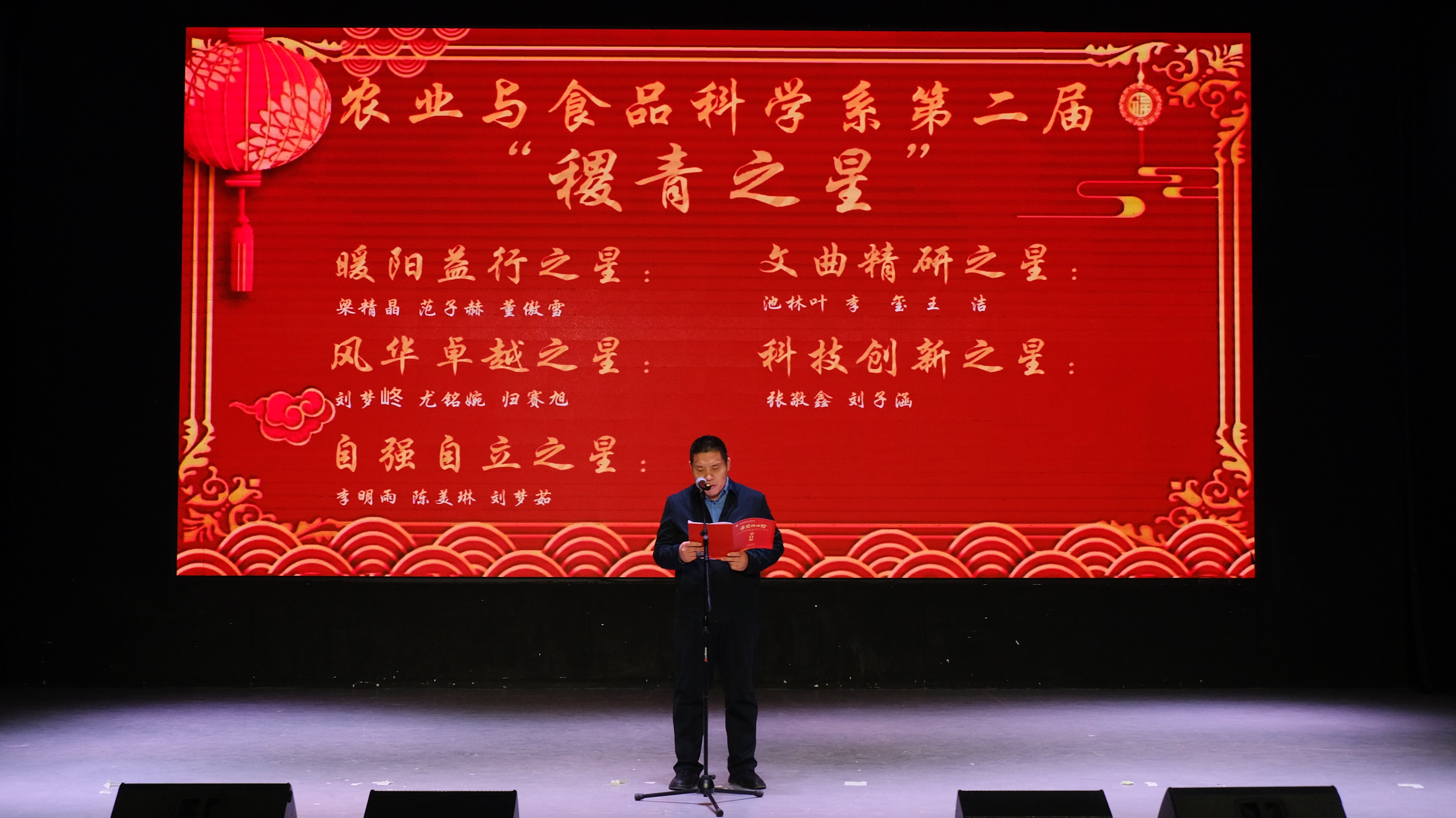 12月26日,我系在北校区音乐学院小礼堂举办了2026年元旦联欢会暨第二届“稷青之星”表彰大会,党委副书记祭立怀出席并致辞,学校办公室、宣传部、学生处(学生工作部)负责人为获奖学生颁奖,我系领导班子、全体师生参加活动。