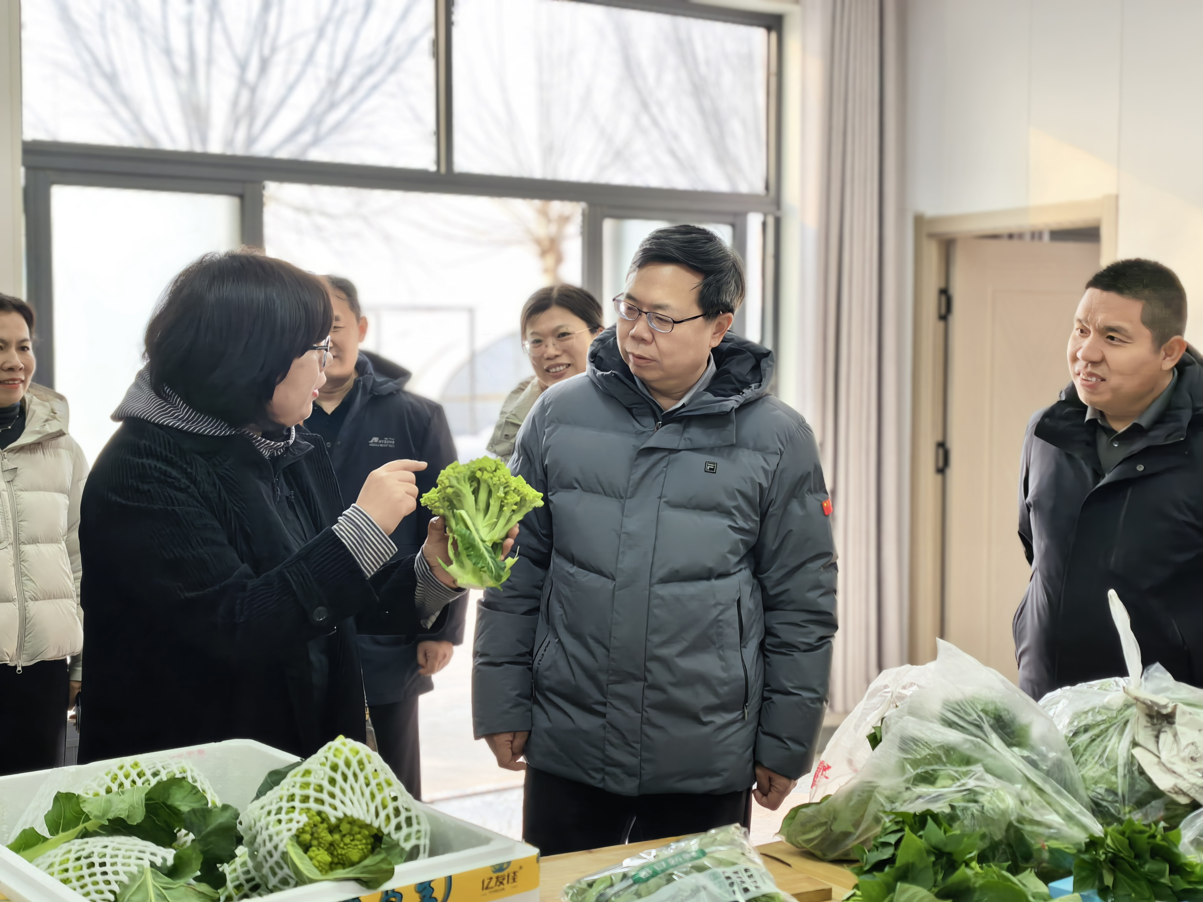 会后,冯宝强一行参观了公司中央厨房和鑫农孵化基地。在中央厨房,河北永盛食品科技有限公司总经理刘敏然从现代化的食品加工流程、严格的质量控制体系以及先进的生产设备等方面介绍了基本情况。在赵县鑫农孵化基地,冯宝强一行深入蔬菜种植大棚,实地考察了基地的种植环境和运营模式。
