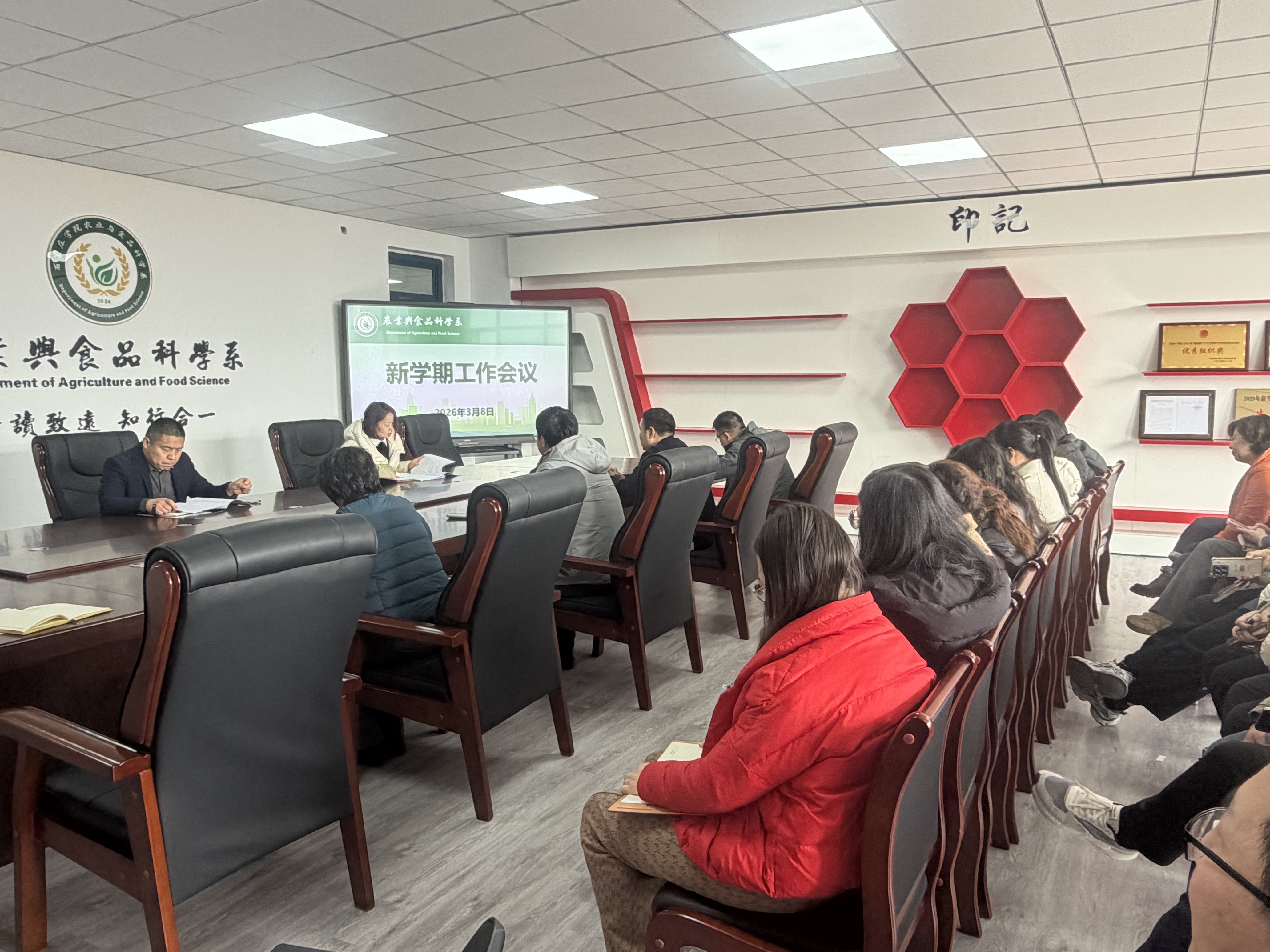 3月8日,我系召开 2026年新学期工作会议,传达贯彻学校党委全委会(扩大)会议、2026年度工作部署会会议精神,并对新学期我系工作进行安排部署。
