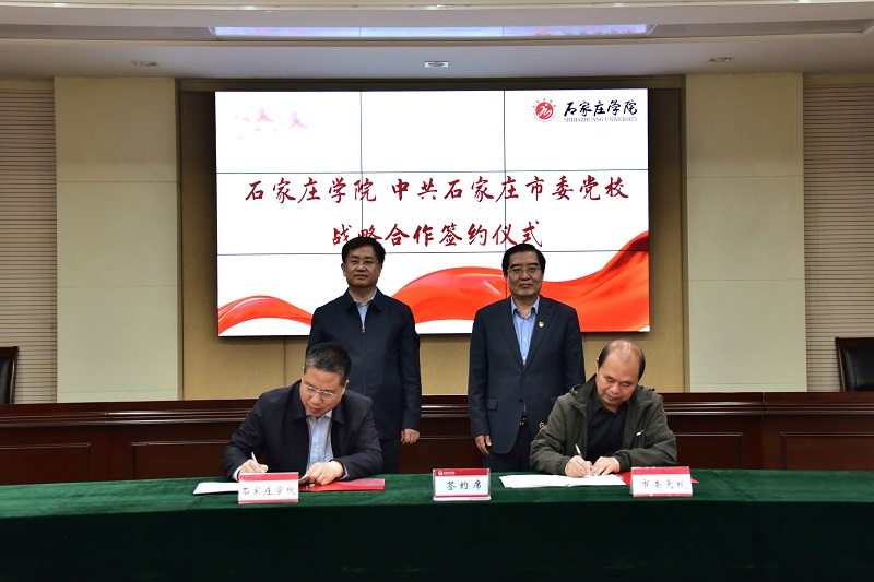 4月19日下午,我校与中共石家庄市委党校签署战略合作协议。中共石家庄市委党校常务副校长赵士宗、副校长尹浩,我校党委书记陈亮、党委副书记徐拥政出席,双方院校相关职能部门负责人参加签约仪式。签约仪式由徐拥政主持。