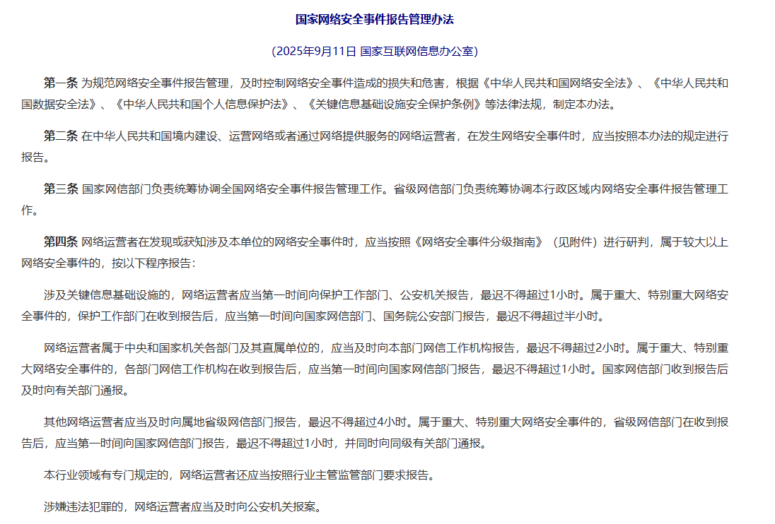 国家网络安全事件报告管理办法