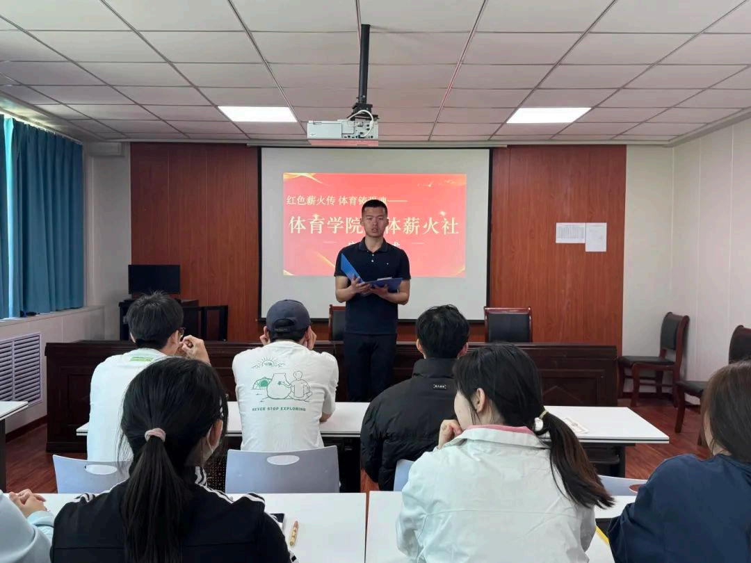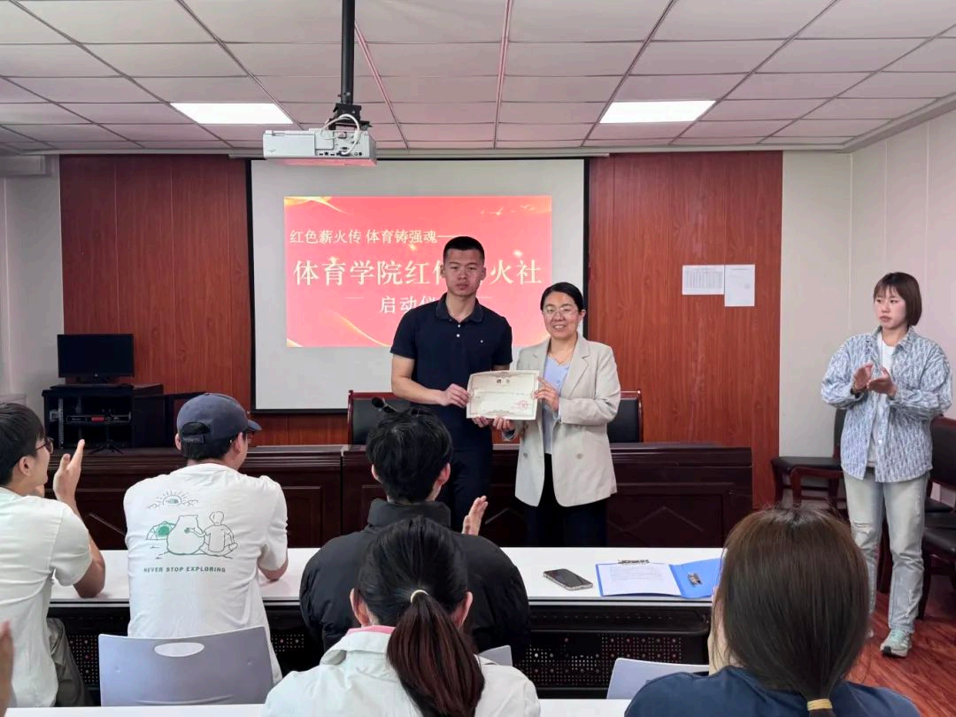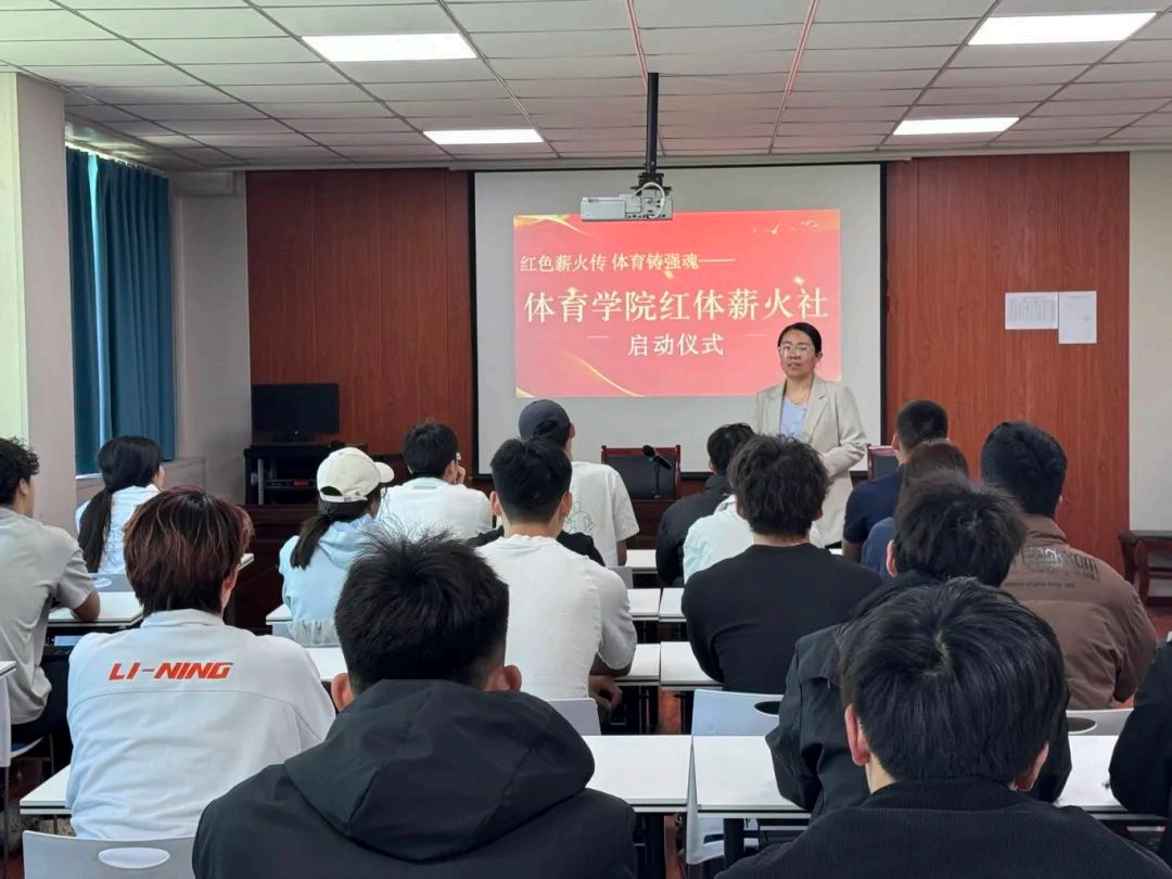 体育学院红体薪火社成立仪式隆重举行。指导老师以及同学们齐聚一堂,共同见证这一重要时刻。红体薪火社,寓意着红色体育精神如薪火般代代相传。社团致力于将体育的拼搏精神与红色文化的深厚内涵相融合,通过开展各类体育活动、红色文化学习交流等,提升同学们的身体素质,培养大家的爱国情怀和社会责任感。