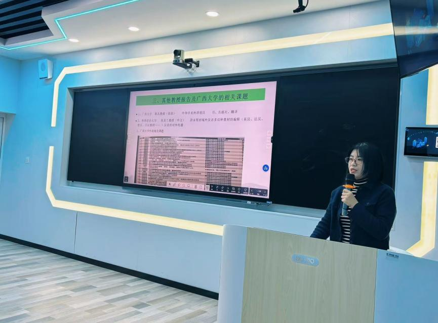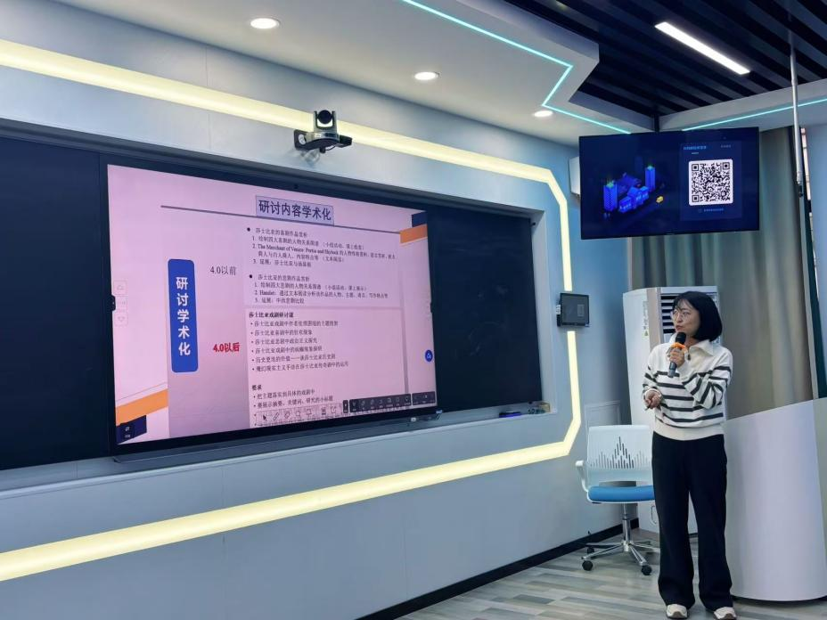 成新霞老师的汇报聚焦于区域国别学与跨学科的探索,她通过结合个人研究课题、思政示范课程等多个角度,提出了将区域国别学与跨学科有效结合的初步路径,为参会教师提供了新的研究思路。