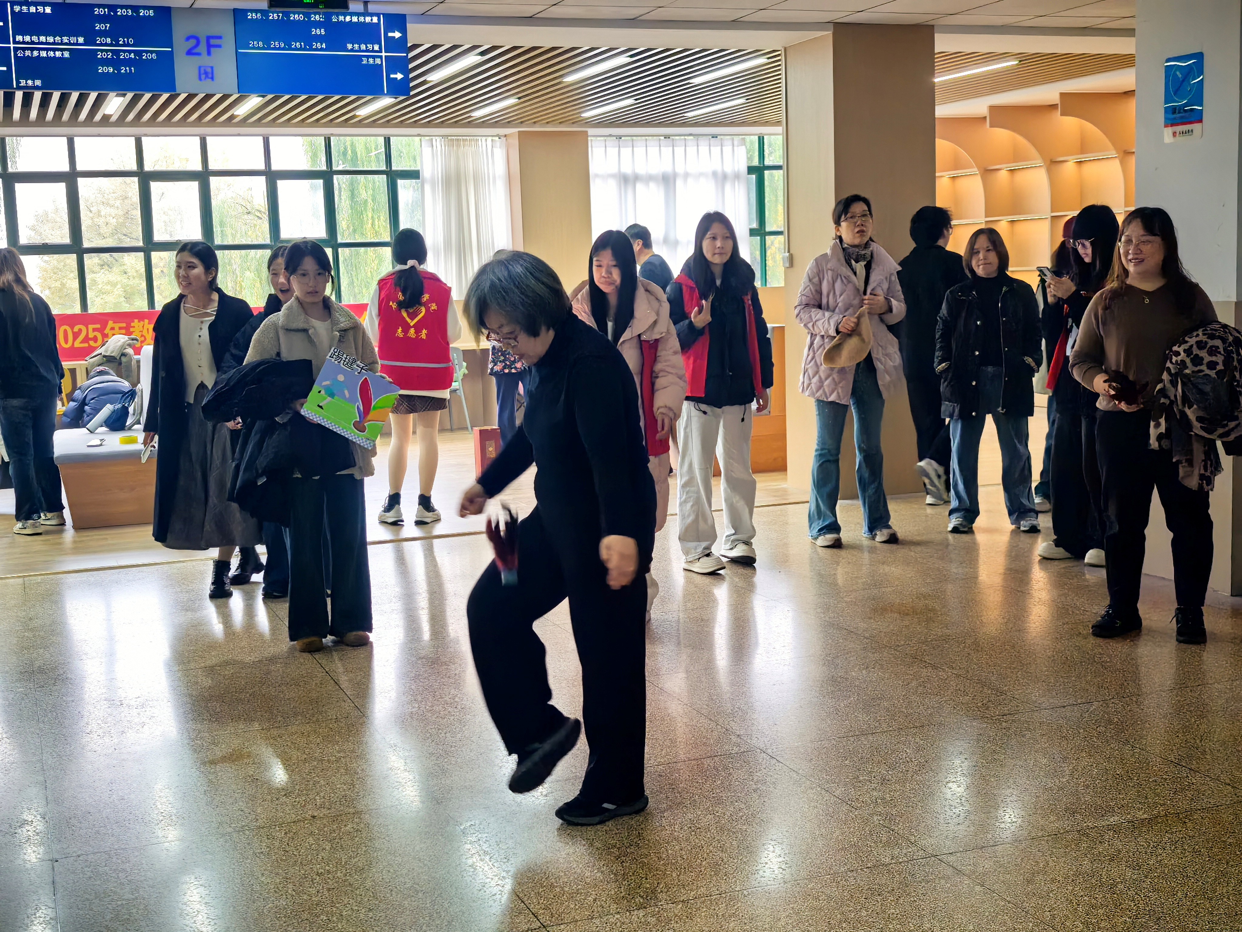 本次运动会注重趣味性与协作性,设置了一分钟踢毽子、一分钟运乒乓球和投壶三项比赛项目。赛场上,平日里严谨治学的老师们化身矫健的运动员,踢毽子时身姿灵动,运乒乓球时专注稳健,投壶时则凝神静气、巧施妙手。现场加油声、欢笑声、喝彩声此起彼伏,气氛热烈非凡。最后学院为获奖的教职工颁发了纪念品。