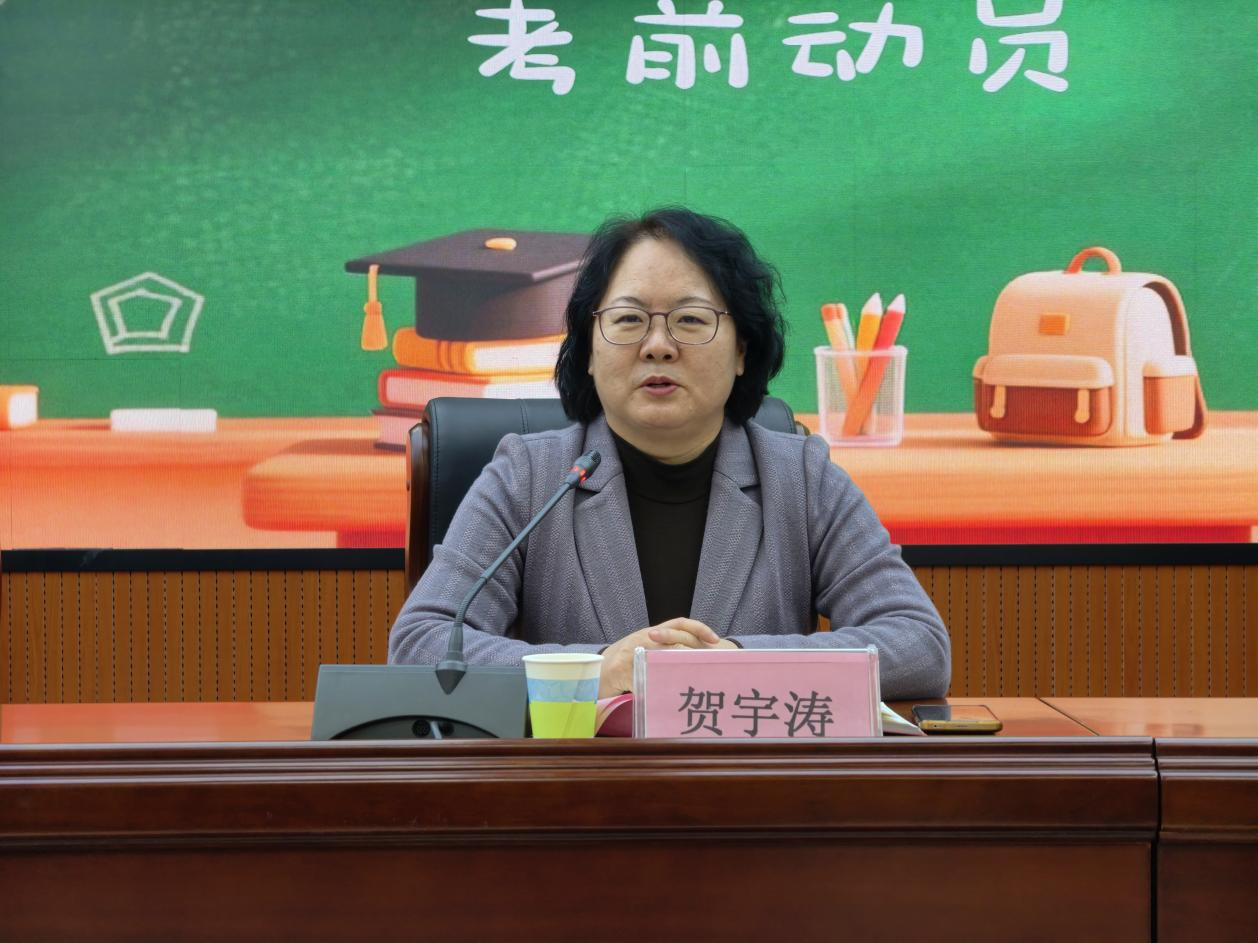 副院长贺宇涛代表学院作动员讲话。她充分肯定了同学们在备考期间展现的拼搏精神与坚定意志,强调越是到最后阶段,越要保持定力、稳扎稳打,并就冲刺阶段的复习规划、心态调整等提出了切实建议。言语间既有理性的指导,亦有关怀的温度,现场掌声不断。