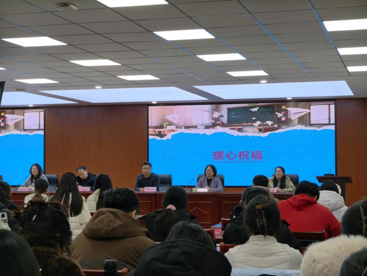 为鼓励考研同学坚定信心、调整状态、全力备考,12月16日下午,外国语学院举办了“研途逐光 上岸可期”2026届考研冲刺动员会。学院领导班子、毕业班辅导员和考研学生共120余人参加了本次活动。