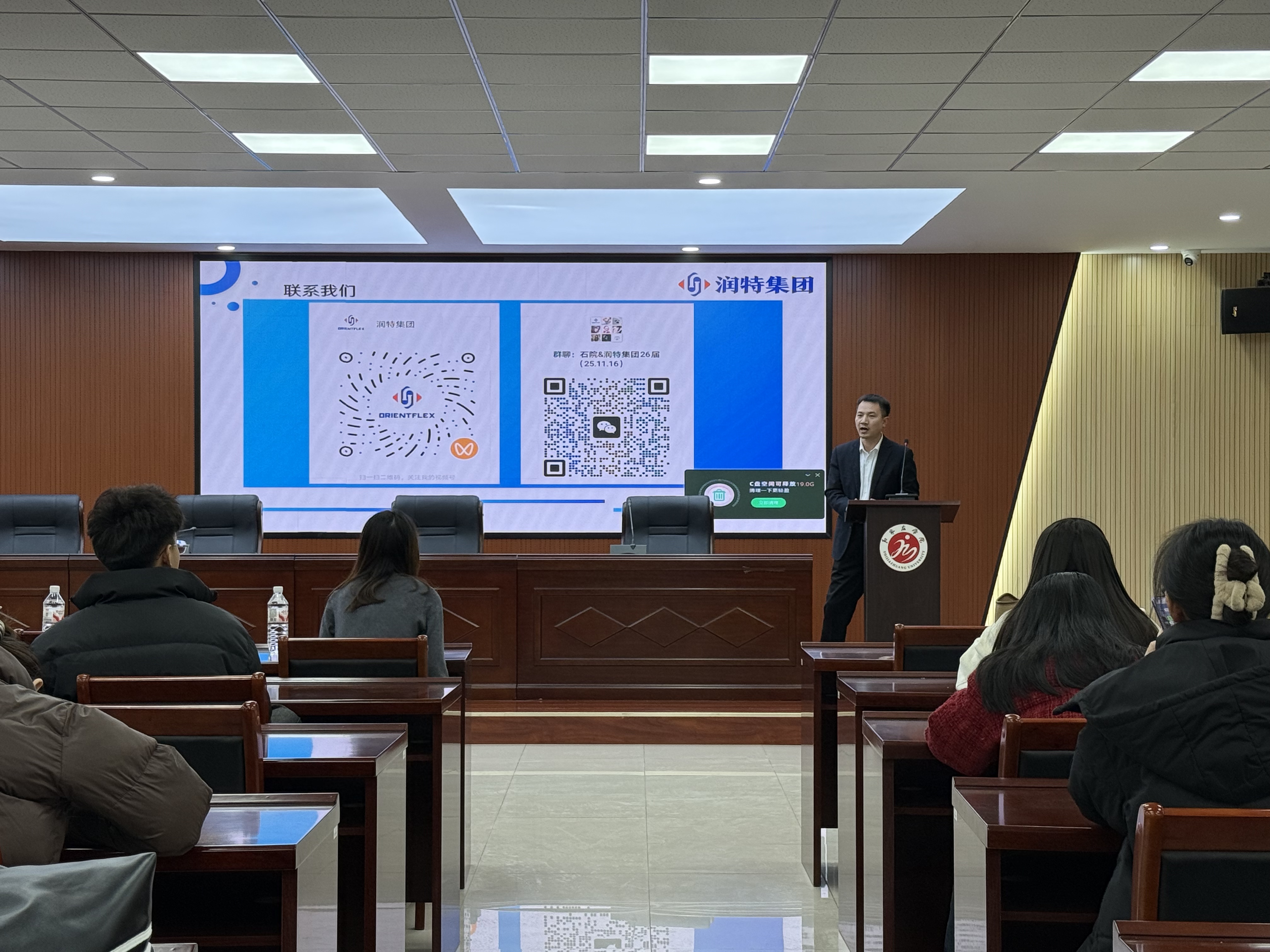 四家企业负责人分别向在场的毕业生们详细介绍了公司的企业文化、发展历程、业务范围、岗位需求等情况,为毕业生提供了外贸、物流、教师等丰富岗位。其中我院2007届毕业生田欢作为石家庄高泰金刚石工具科技有限公司总经理分别分享了自己的创业经历,我院2025届毕业生魏思倩作为河北润特新材料科技有限公司分享了自己参加广交会和出国参展的情况,他们回忆起在学校的点点滴滴,感慨母校给予的知识和技能培养为他们的职业发展奠定了坚实基础。随后,企业在互动环节解答了同学们关于实习、就业、职业发展等方面的问题。此次宣讲增加了学生和企业之间的沟通和了解,帮助学生深入了解就业形势和企业的用人需求,明确自身的就业方向。