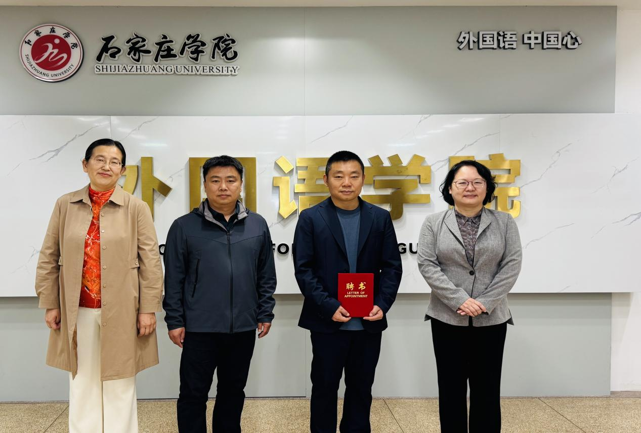参观结束,外国语学院副院长贺宇涛向崔翔勇总经理颁发了石家庄学院外国语学院客座教授聘书,代表学院对他在河北爱德会展和石家庄学院外国语学院校企合作方面所作的贡献表示了肯定和感谢!