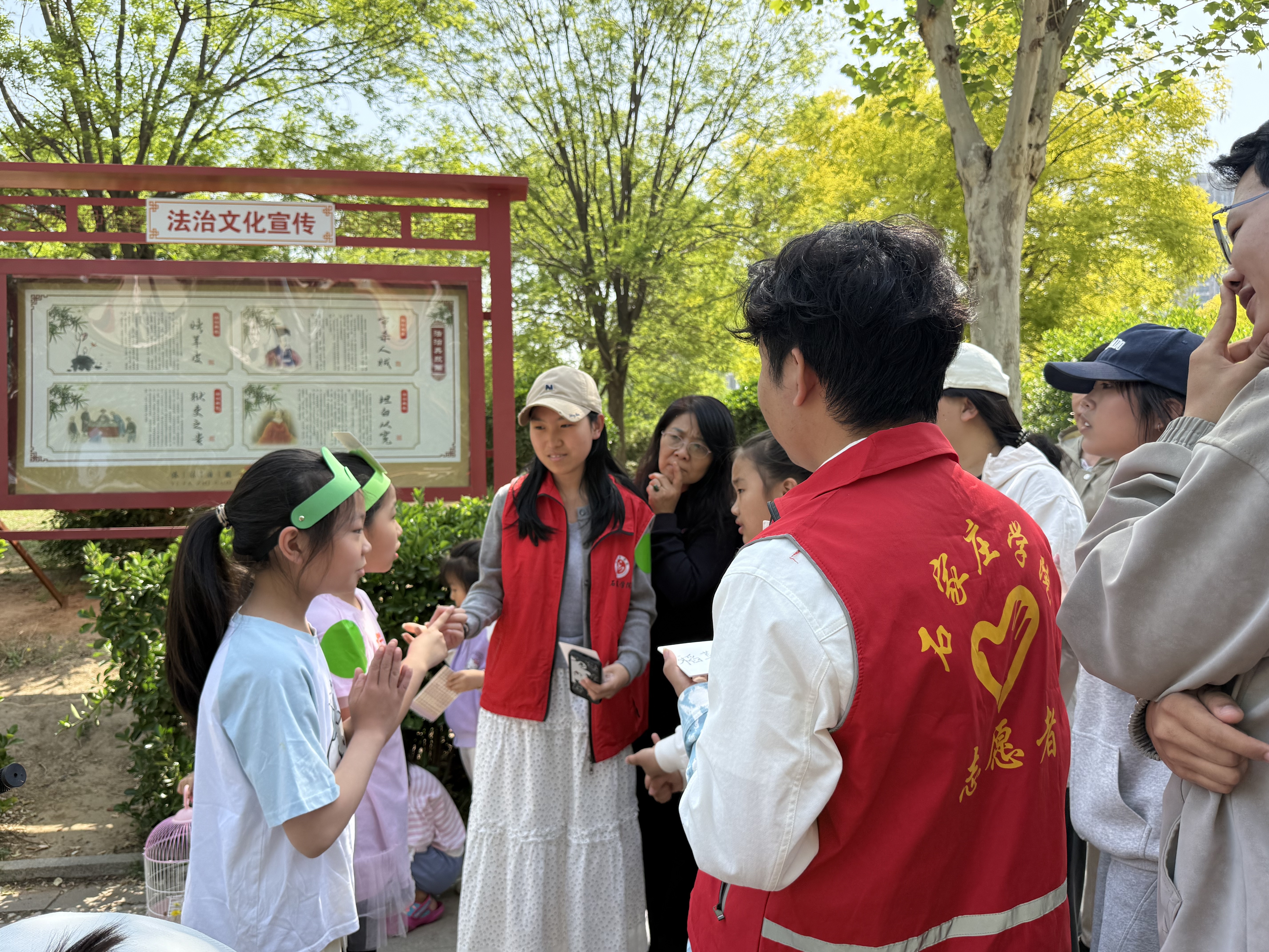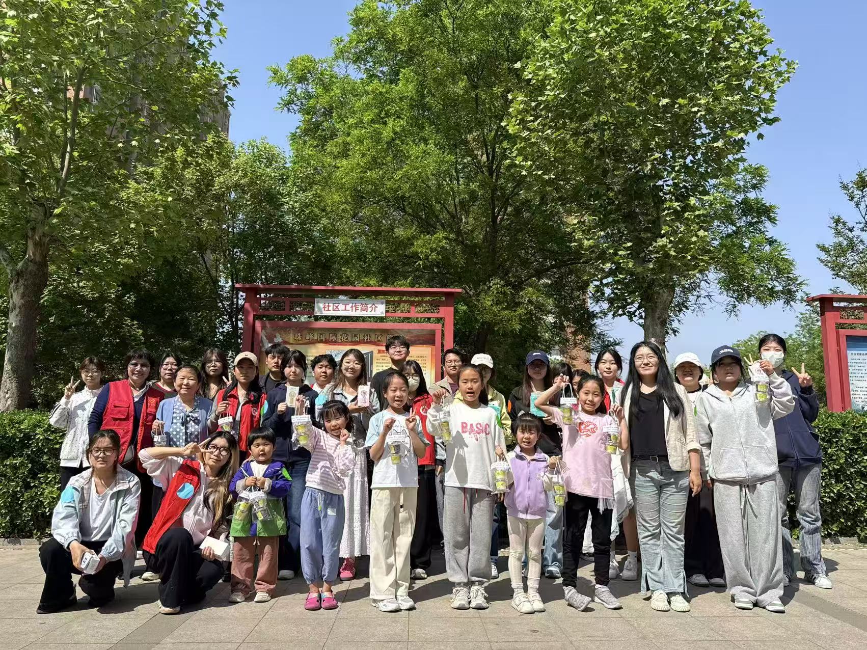 活动现场气氛热烈融洽,欢声笑语此起彼伏,处处洋溢着温馨和谐的邻里氛围。志愿服务过程中,志愿者各司其职、默契配合,全身心投入各项服务工作。在合作运书活动中,志愿者规范讲解游戏规则,全程做好现场陪护与安全防护,协助大家完成运书接力挑战;在知巧拼字互动环节,志愿者化身文化引导员,悉心指导小朋友及社区居民动手拼组汉字;在书名猜猜猜游戏现场,志愿者们化身趣味引导员与比划小助手,耐心引导现场小朋友积极竞猜。活动结束后,全体志愿者共同清理了活动场地,捡拾社区小花园垃圾,以劳动实践践行文明理念。